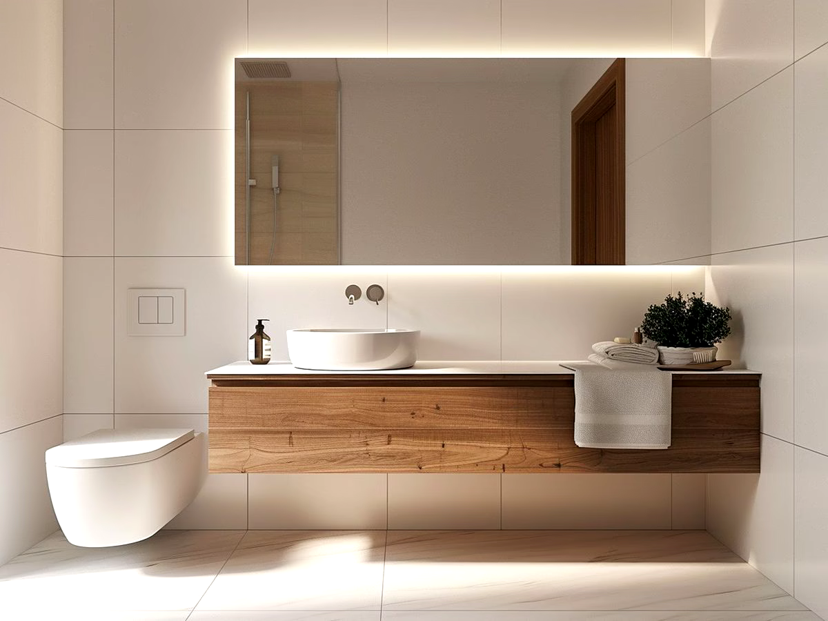 Łazienka z centralnym lustrem i podświetleniem LED