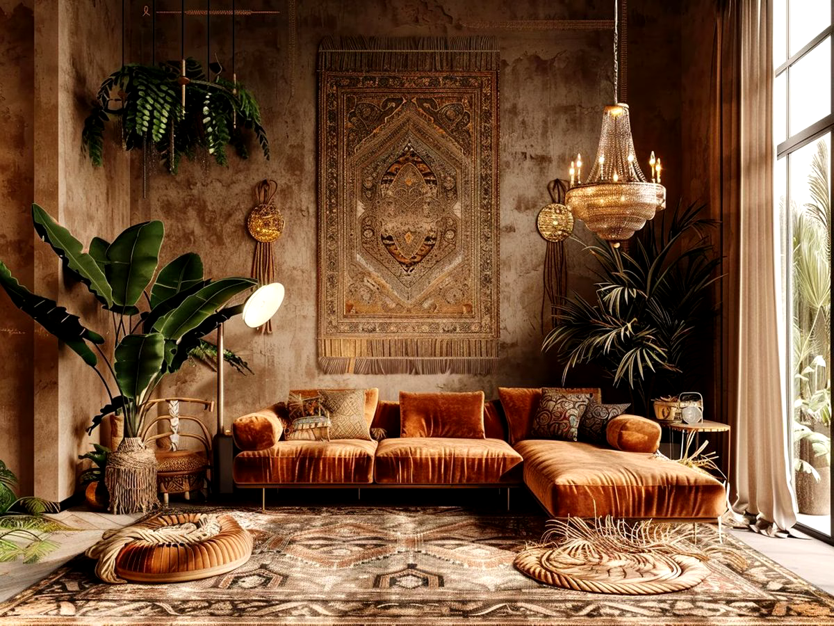 - Mieszkanie w stylu boho z nutą glamour: Wyobraź sobie przestrzeń, w której ciepłe, ziemiste barwy spotykają się z eleganckimi, błyszczącymi akcentami. Połączenie ręcznie tkanych dywanów, kolorowych poduszek i starannie wyselekcjonowanych antyków z nowoczesnymi, designerskimi meblami tworzy wnętrze, które emanuje przytulnością i luksusem. To idealny wybór dla osób ceniących sobie zarówno komfort, jak i oryginalność.