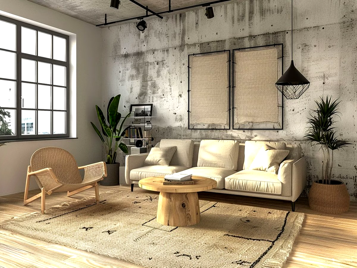 • Spójna paleta barw: Utrzymaj harmonijną kolorystykę, stosując naturalne odcienie drewna i betonu, które będą doskonałym tłem dla industrialnych akcentów.