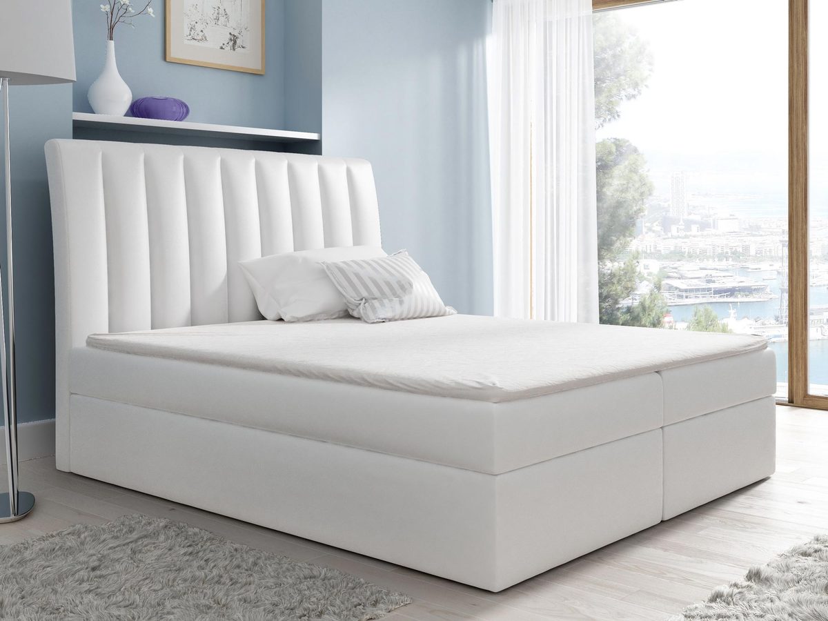 Łóżko kontynentalne białe aranżacja MERINO