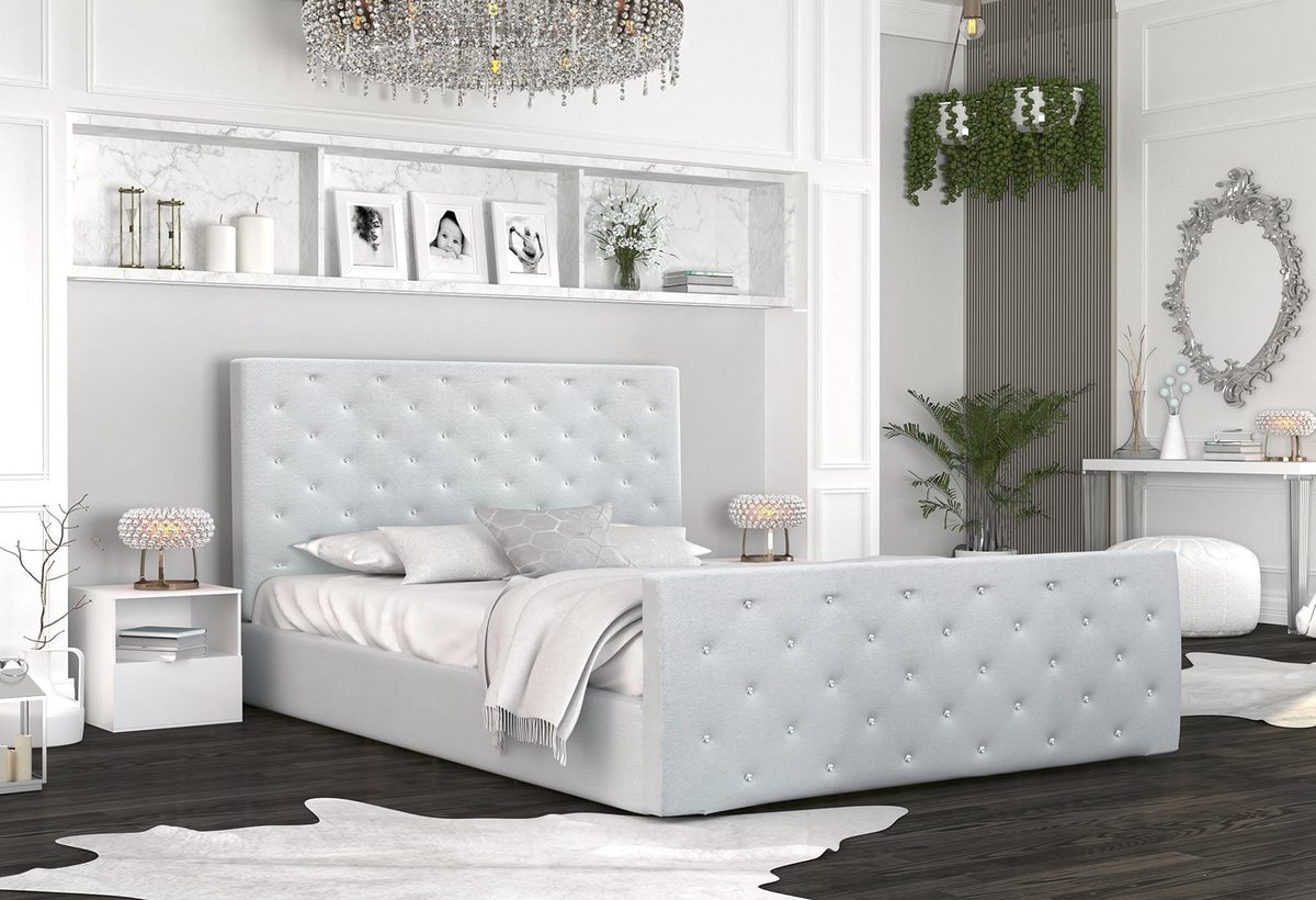 Łóżko tapicerowane białe kryształki ZOE aranżacja