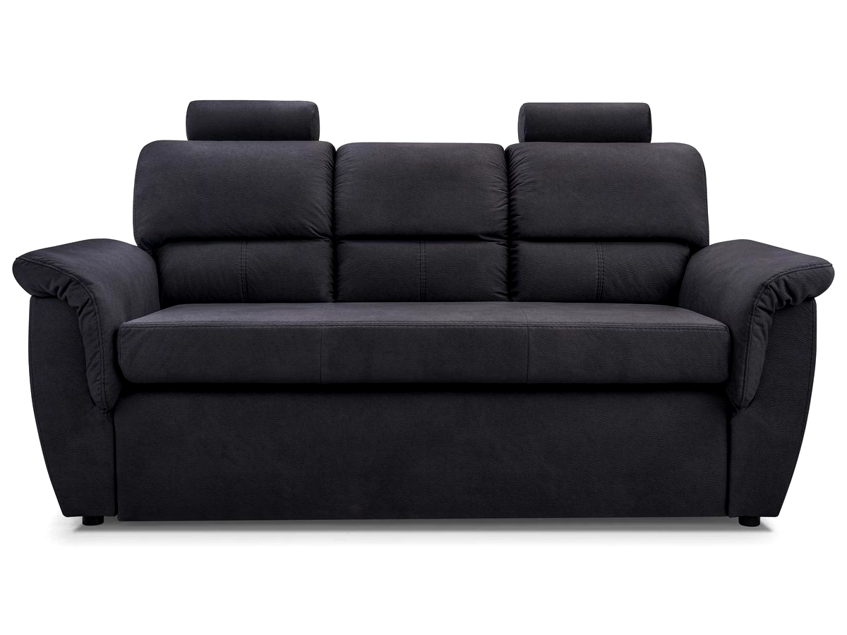 Kanapa czarna rozkładana z eleganckimi zagłówkami