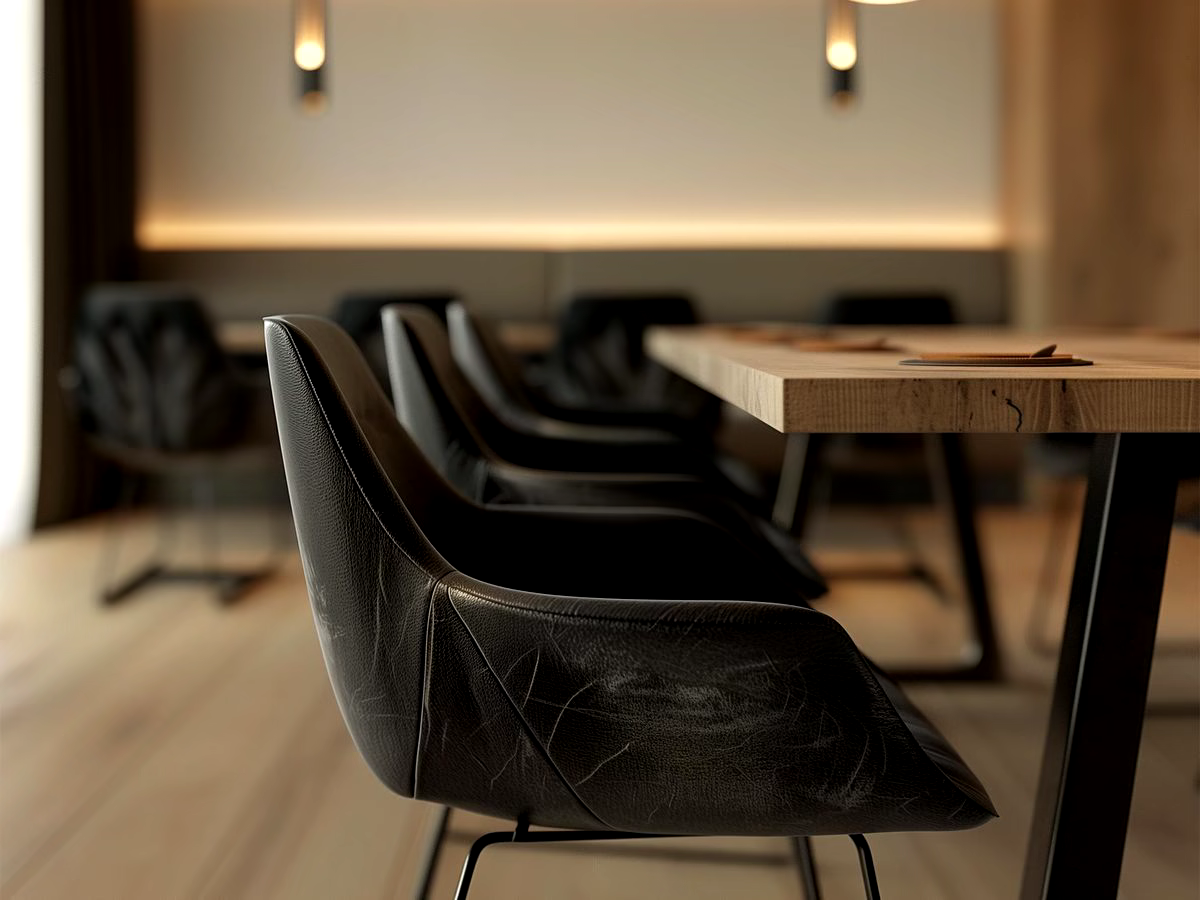 • Kontrast: W małych, ciemnych pomieszczeniach czarne krzesła mogą potęgować wrażenie ciasnoty.