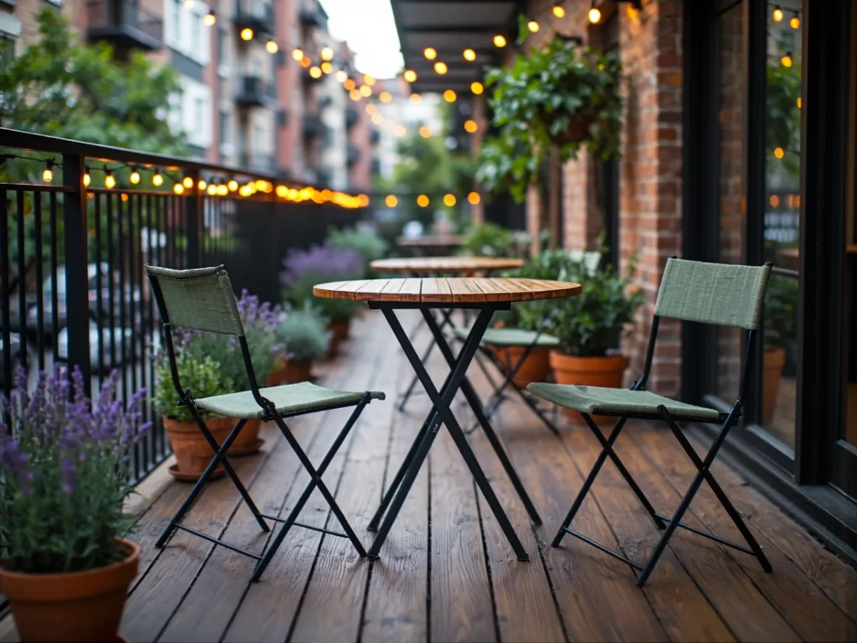 Składany stolik i krzesła idealne na mały balkon oszczędzające miejsce