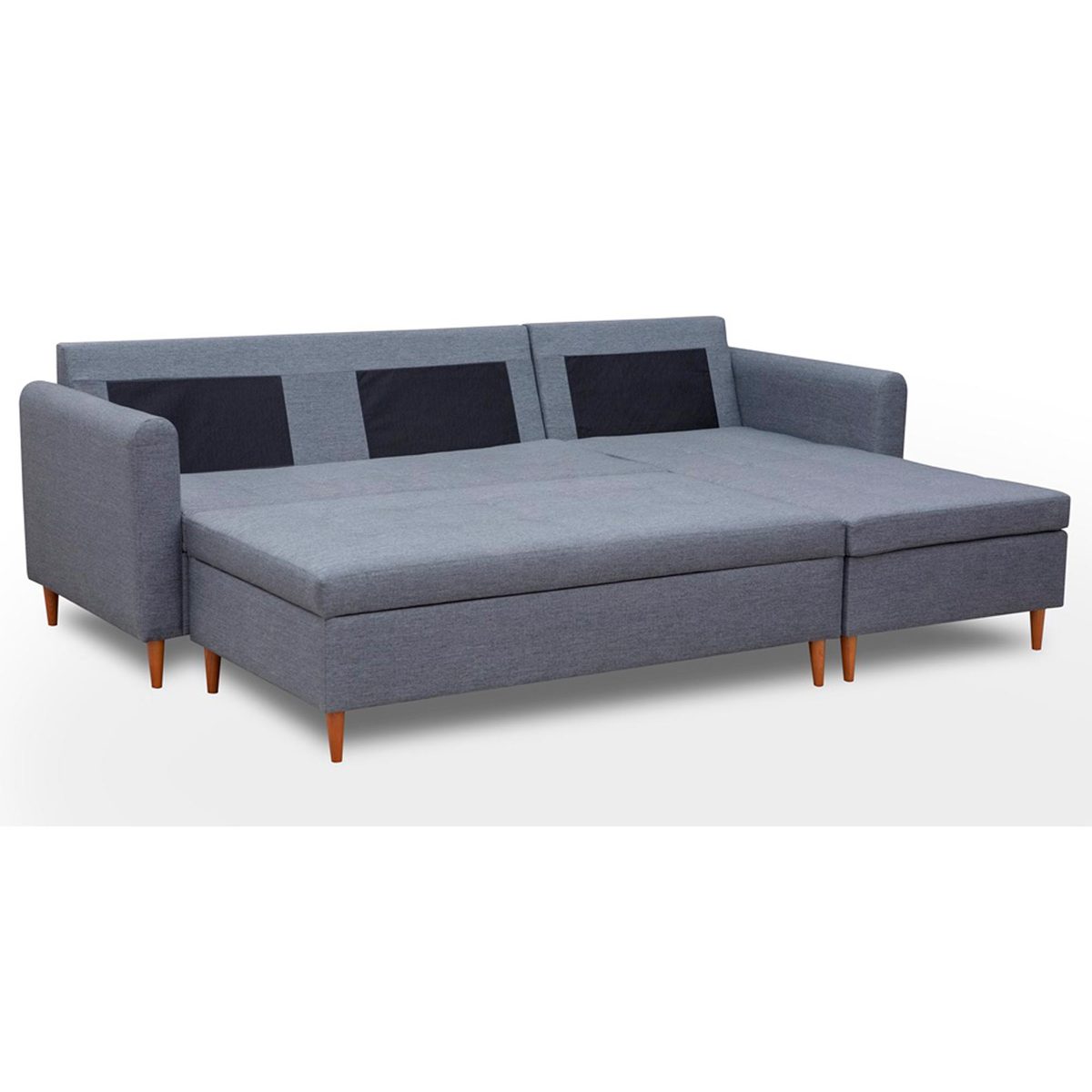 Mechanizm wyposażony w narożnikach spełnia funkcje praktyczną i bardzo wygodną. Aby rozłożyć mebel należy wysunąć siedzisko, a potem złożyć oparcie. Dodatkowo pod siedziskiem znajduje się pojemnik na pościel. Minusem tego mechanizmu jest to, że materac nie jest równomierny.