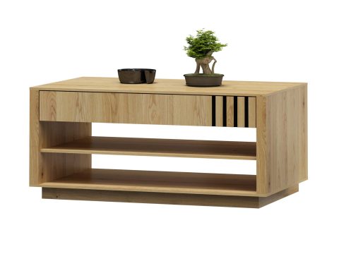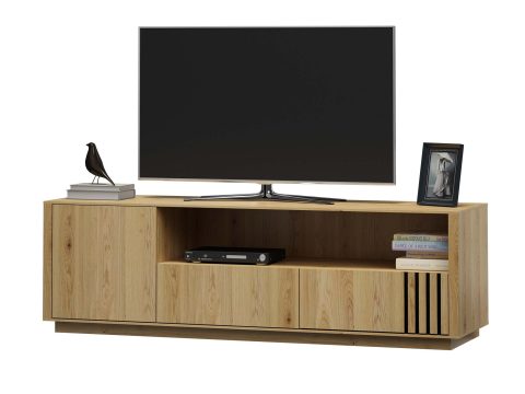 Choć ryflowania nie można uznać za nowe rozwiązanie, dziś zyskuje ono zupełnie nowy wymiar. Naturalna okleina zestawiona z elementami litego drewna prezentuje się niezwykle autentycznie, a jednocześnie jest przyjemna w dotyku. Ponadto ryflowania podkreślają naturalną strukturę materiału, tworząc bryły, które wyglądają nowocześnie i bardzo wyraziście. Dodatkowo system push to open pozwala zachować pełną czystość formy, ponieważ eliminuje potrzebę stosowania uchwytów. W efekcie meble pozostają minimalistyczne w odbiorze, mimo że ich struktura jest bogata i dekoracyjna. Maksymalny wysuw szuflad zapewnia z kolei wygodę użytkowania na co dzień.
