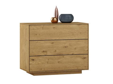 Choć wygląd mebli odgrywa kluczową rolę, kolekcja Fiorenzo została zaprojektowana również z myślą o trwałości. Solidne konstrukcje zapewniają stabilność i odporność na upływ czasu, dzięki czemu wyposażenie świetnie sprawdza się w codziennym użytkowaniu. Ponadto naturalne słoje dębu podkreślają elegancki, ale jednocześnie przytulny charakter wnętrza, tworząc atmosferę, w której łatwiej poczuć harmonię. Dodatkowo system push to open pozwala zachować pełną czystość formy, ponieważ eliminuje konieczność stosowania uchwytów. Dzięki temu meble prezentują się lekko i nowocześnie, a ich funkcjonalność nie traci na wygodzie.