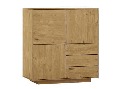 Meble Fiorenzo to wyjątkowa propozycja dla tych, którzy poszukują wyposażenia łączącego nowoczesną formę z pięknem natury. Ponieważ każdy element kolekcji wykonano z okleiny dębowej, całość w wyraźny sposób nawiązuje do wyglądu szlachetnego, dostojnego drzewa. Niepowtarzalne układy słojów oraz delikatne różnice w wybarwieniu sprawiają, że każdy mebel ma swój unikalny charakter, a dwie identyczne bryły po prostu nie istnieją. To właśnie ta naturalna zmienność nadaje kolekcji Fiorenzo wyjątkową osobowość. Dzięki temu witryny, komody czy szafy stają się czymś więcej niż standardowym wyposażeniem — stają się elementem dekoracji, który wzbogaca wnętrze i nadaje mu szlachetnego tonu.