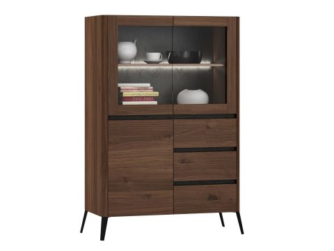 Choć kolekcja zachowuje nowoczesną formę, uwagę przyciąga przede wszystkim kontrast materiałów. Dekoracyjny kamień o szarej barwie tworzy mocny akcent wizualny, który pięknie współgra z naturalną strukturą okleiny. Ponadto orzech baltimore wprowadza eleganckie, głębokie tony, dzięki którym meble prezentują się niezwykle luksusowo. Dodatkowo nowoczesne systemy, takie jak maksymalny wysuw szuflad oraz cichy domyk, podnoszą komfort użytkowania. Dzięki nim kolekcja jest nie tylko piękna, ale też wyjątkowo praktyczna w codziennym życiu.