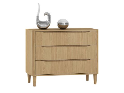 Meble Verlina to kolekcja zaprojektowana z myślą o osobach, które chcą łączyć współczesny design z praktycznymi rozwiązaniami. Ponieważ meble powstały z połączenia płyty meblowej oraz forniru w naturalnym odcieniu dębu alpejskiego, prezentują się elegancko i lekko, a jednocześnie pozostają trwałe i łatwe w codziennym użytkowaniu. Każdy element kolekcji został zaprojektowany tak, aby maksymalnie wykorzystać przestrzeń wewnątrz mebla, co znacząco zwiększa komfort przechowywania. Dodatkowym atutem serii są subtelnie zaokrąglone brzegi, które nadają bryłom miękkości i nowoczesnego charakteru. Dzięki temu meble prezentują się lżej wizualnie, wprowadzając do wnętrza spokój i harmonię.