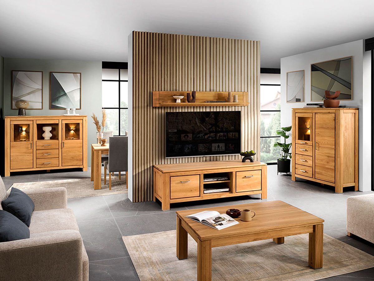 Kolekcja mebli drewnianych Boston, to elegancka a zarazem minimalistyczna propozycja dostępna w wybarwieniu dąb naturalny, która świetnie sprawdzi się jako wyposażenie nowoczesnego salonu.