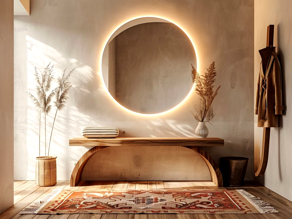 • Naturalne materiały: Drewno, metal, szkło czy kamień – ich połączenie nadaje przedpokojowi przytulny, a jednocześnie nowoczesny wygląd.