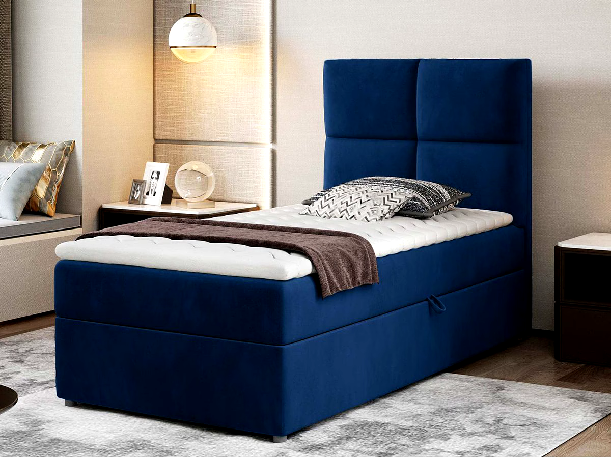 Model łóżka tapicerowanego zazwyczaj posiada skrzynie obitą miękkim materiałem, a w środku znajduje się stelaż. Do wyboru istnieje wiele materacy, które będą idealnie pasować do danego łóżka. Mebel wyposażony został w automat na sprężynach ułatwiający otwieranie funkcjonalnego pojemnika do przechowywania.