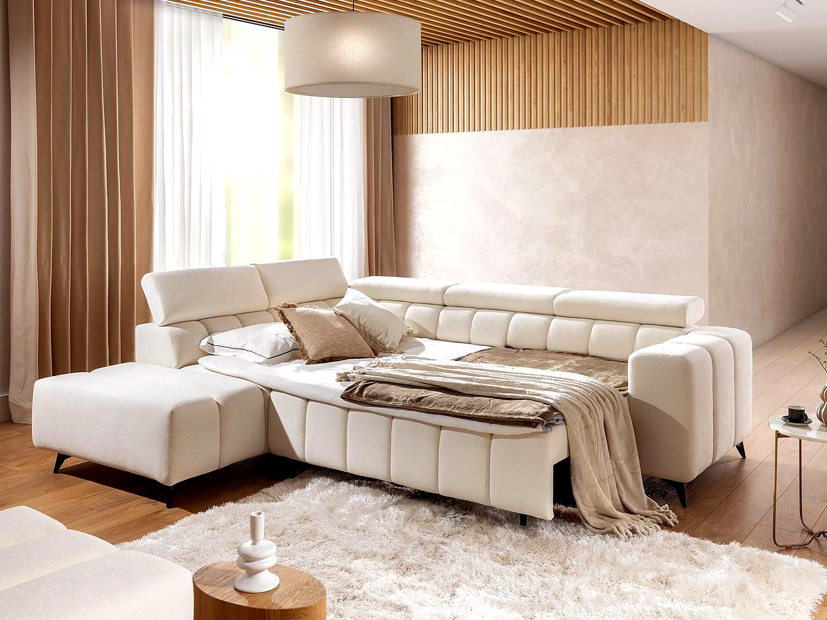 Narożnik z funkcją spania codziennego w stylu scandi – Przytulność i design w jednym