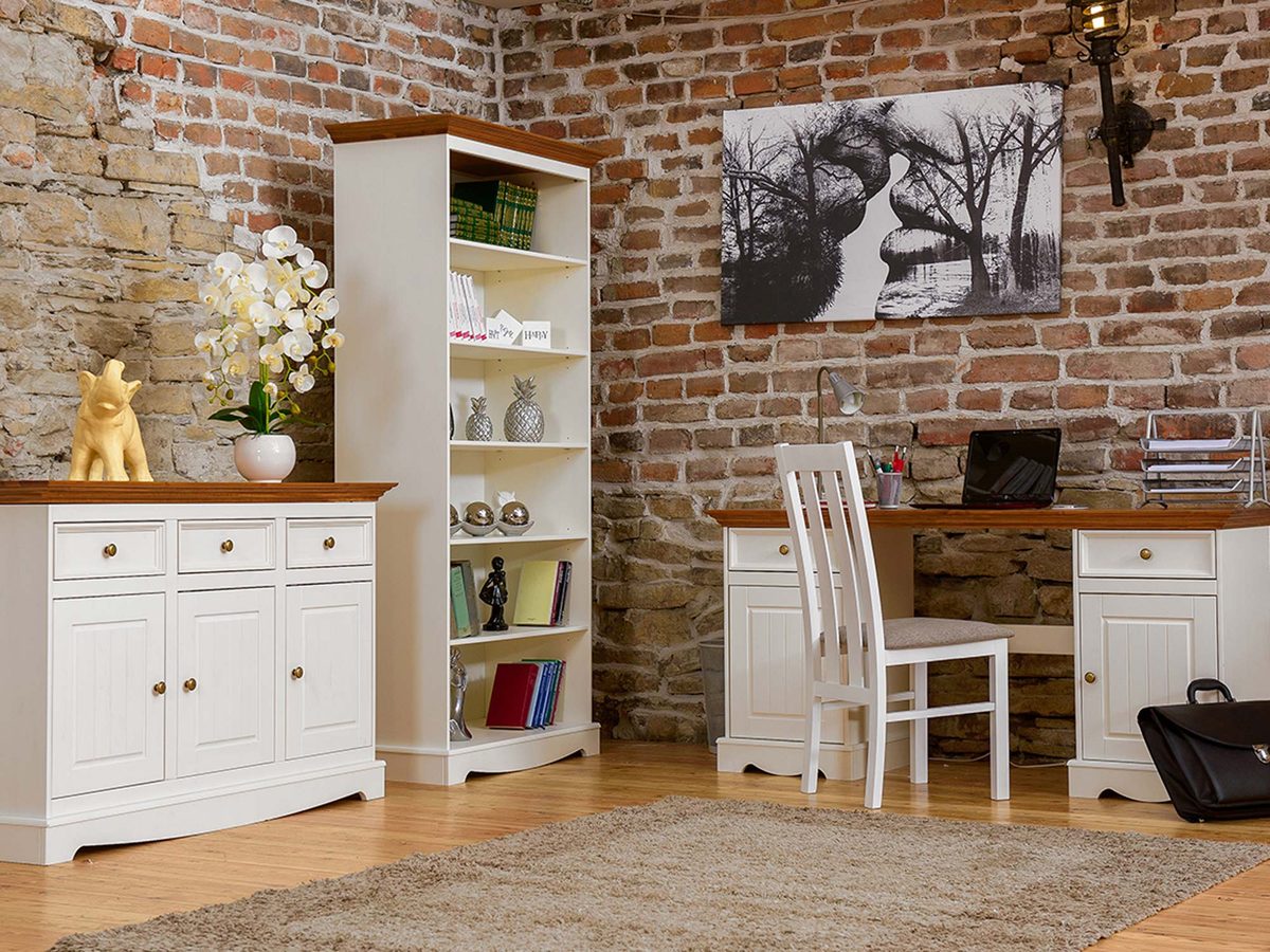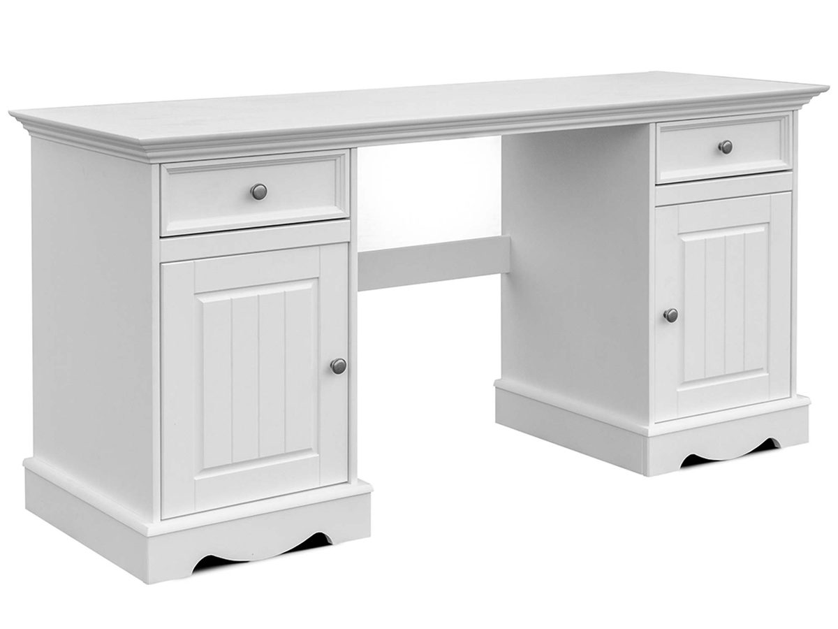 Oferowane biurko drewniane INGRID to solidny mebel zaprojektowany na styl prowansalski. Zdecydowanie najlepiej zaprezentuje się w szykownych biurach jak i pokojach sypialnianych, również w pokoju młodzieżowym. Jest to mebel, który łączy znakomitą trwałość, praktyczność oraz klasę. Dzięki zastosowanym podwójnym szafkom, zyskujesz wystarczająco przestrzeni na schludne i przejrzyste zorganizowanie przestrzeni gabinetowej czy biurowej. Dodatkowo, mebel występuje w kilku wariantach kolorystycznych blatu, co niewątpliwie pozwala na dopasowanie mebla do swojego gustu.