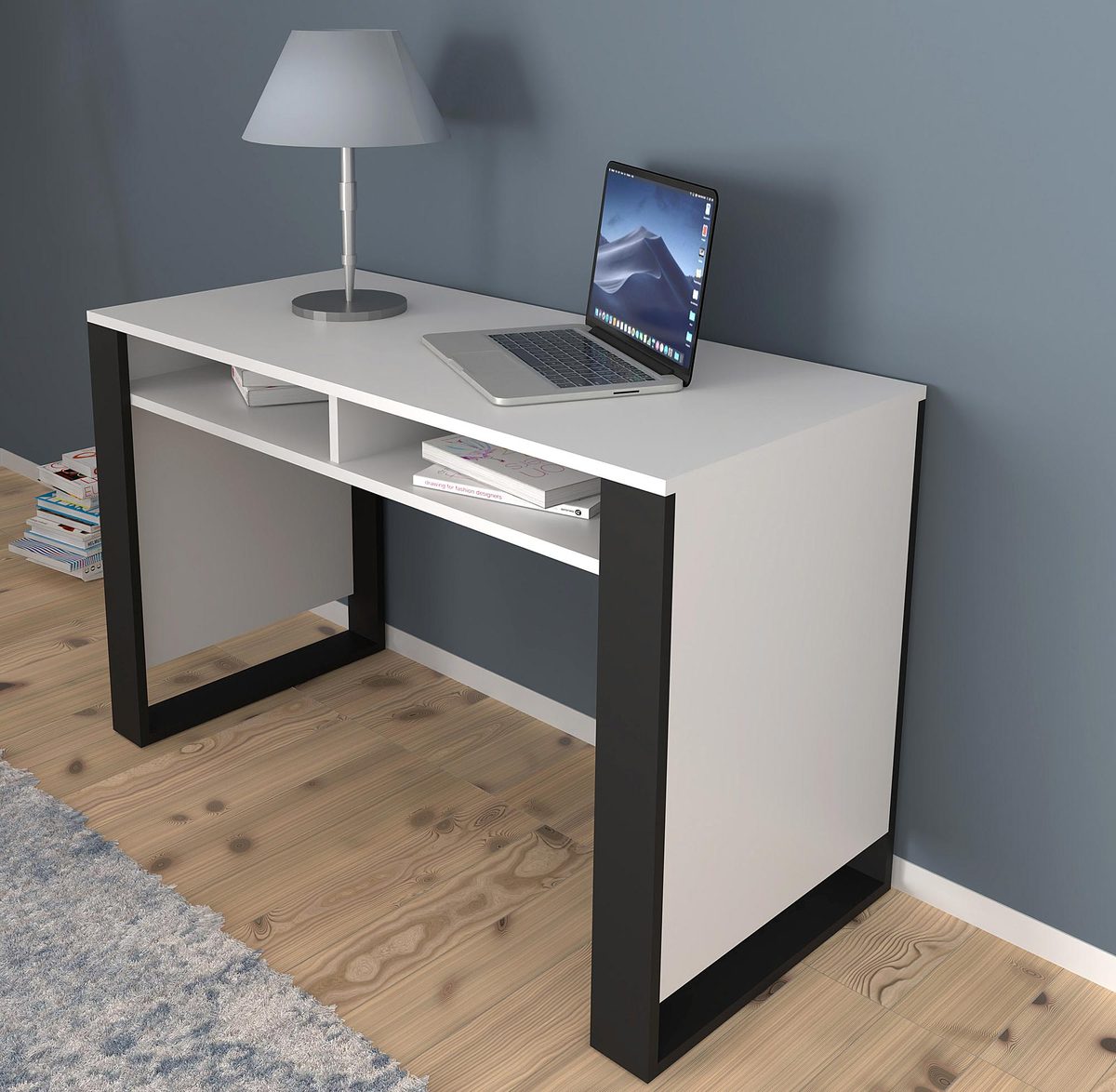 Biurko Takoz wyróżnia się minimalistycznym, a jednocześnie praktycznym projektem. Posiada dwie otwarte półki, które umożliwiają przechowywanie niezbędnych akcesoriów biurowych, książek czy dokumentów. Stabilna rama i solidne nogi gwarantują trwałość i stabilność mebla.