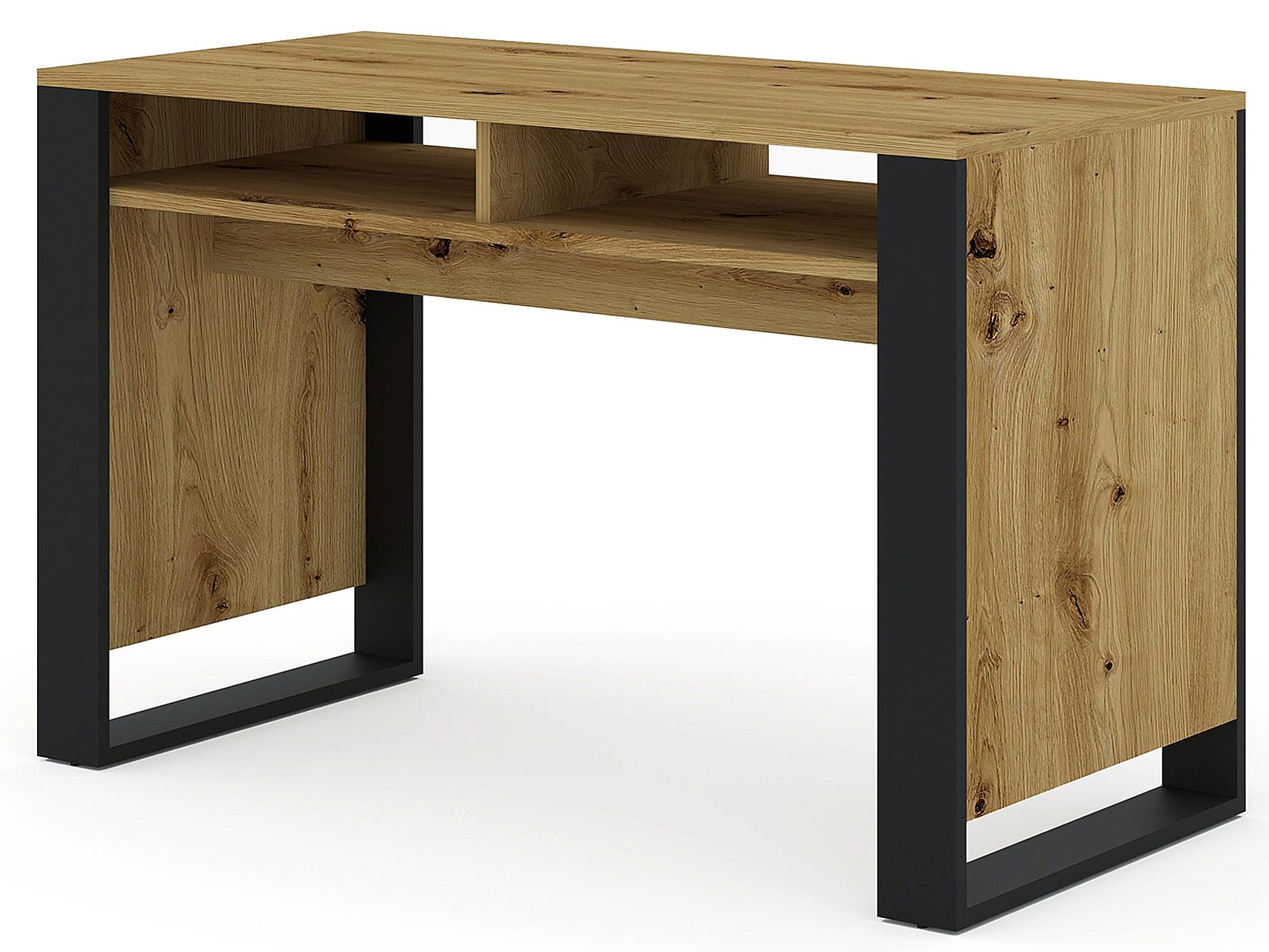 Dostępne w dwóch modnych kolorach – dąb artisan / czarny mat oraz biały mat / czarny mat – biurko Takoz doskonale wpasuje się w różnorodne wnętrza, dodając im nowoczesnego charakteru. Klasyczne i eleganckie wykończenie sprawia, że mebel ten jest nie tylko funkcjonalny, ale również stanowi stylowy element dekoracyjny.