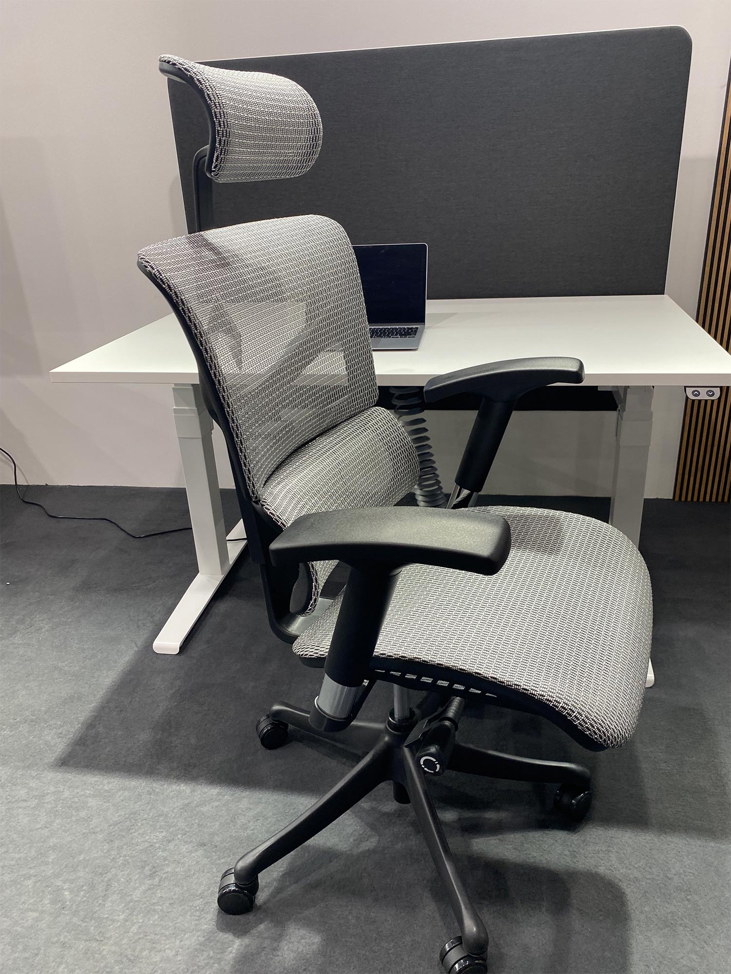 Siedzisko i oparcie wykonane są z przewiewnej siatki, co zwiększa komfort termiczny i zapobiega uczuciu zmęczenia. Podłokietniki 4D oferują pełną swobodę ustawień – w pionie, poziomie, przód–tył oraz obrót – co gwarantuje ergonomiczne podparcie ramion.