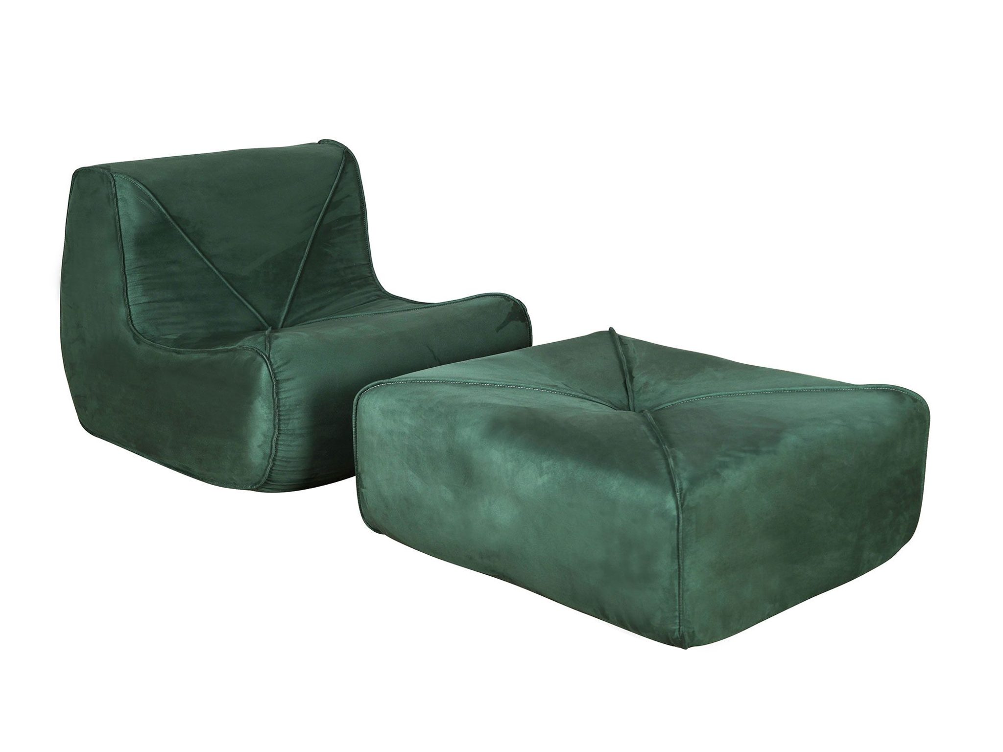Fotel z Podnóżkiem w Butelkowej Zieleni z Welurową Tkaniną – Zenith