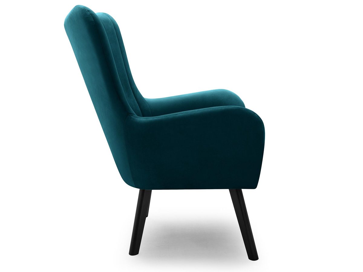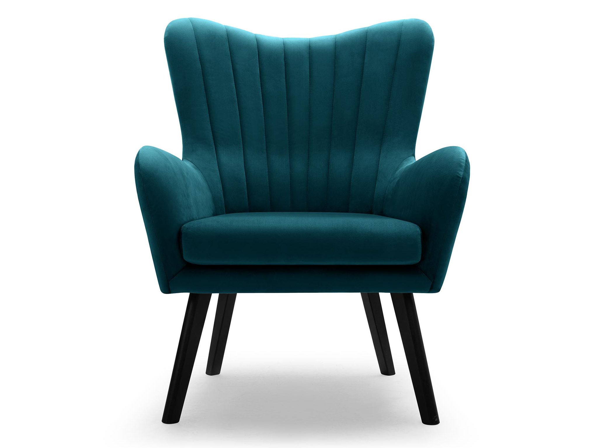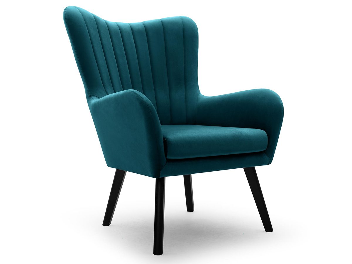 Turkusowy fotel tapicerowany z pionowym pikowaniem w nowoczesnym designie