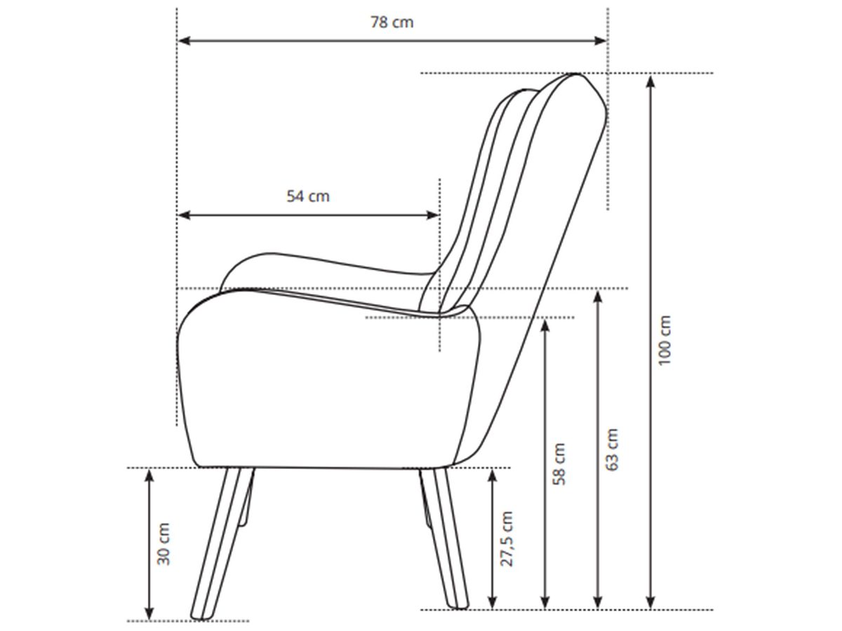 Rysunek techniczny fotela welurowego z pionowym pikowaniem, nowoczesny design