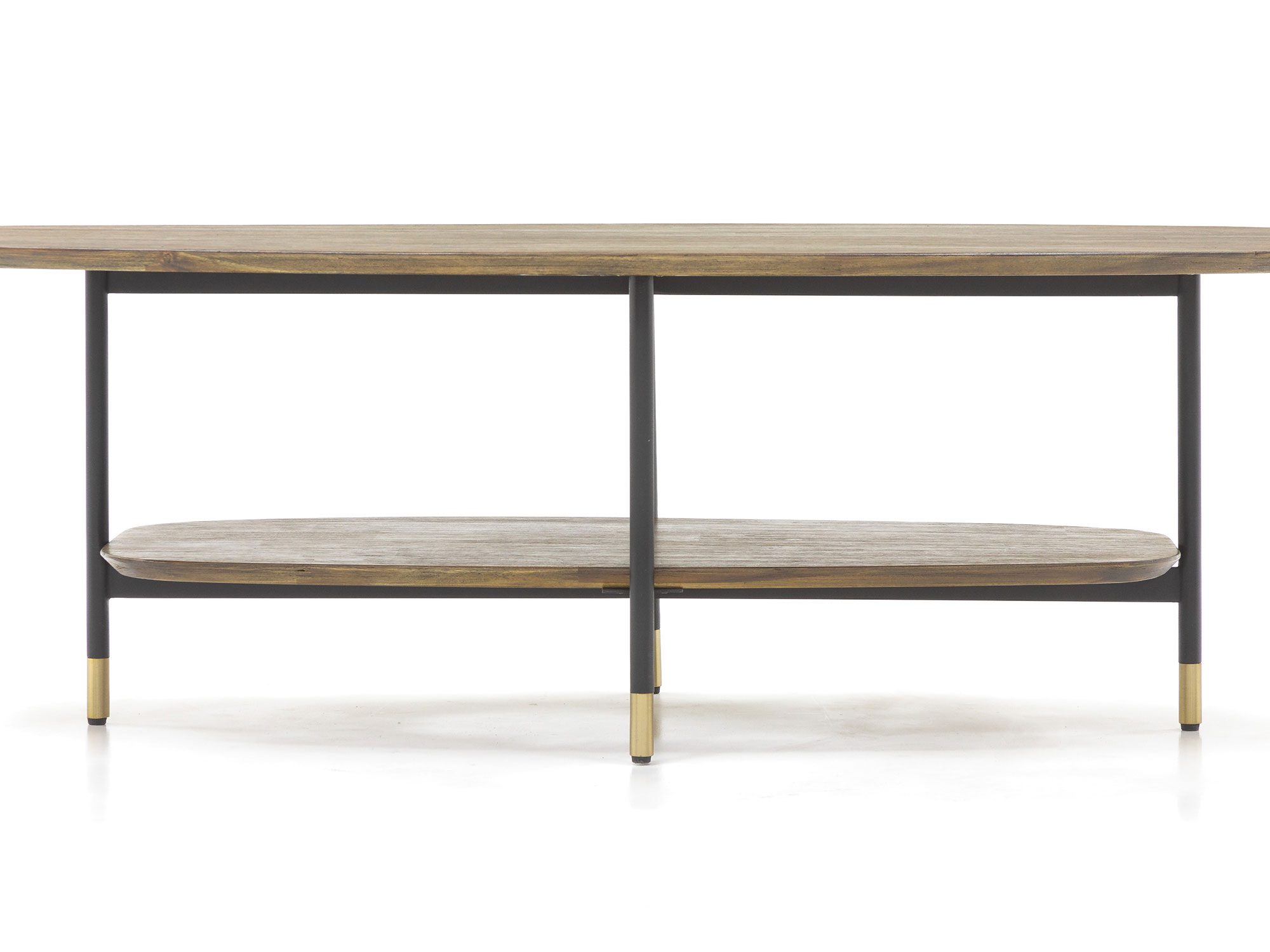 Stolik kawowy drewniany z półką i złotymi akcentami – Enigma
