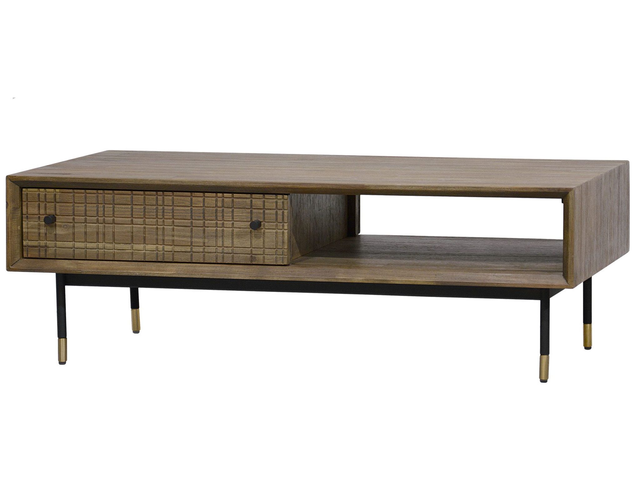 Stolik kawowy retro z metalowymi nóżkami i drewnianym frontem – Enigma