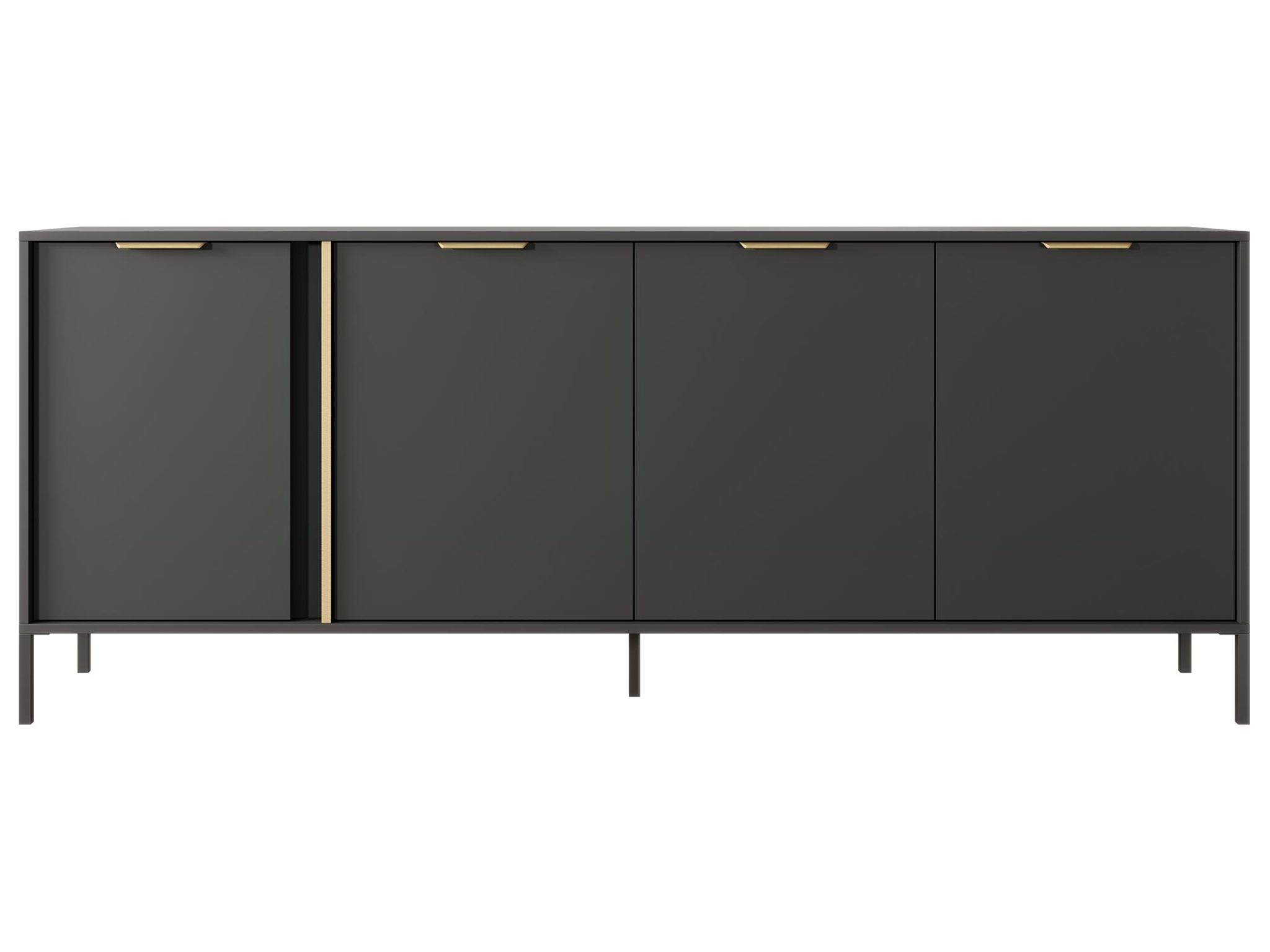 Zaprojektowana z myślą o najbardziej wymagających użytkownikach, Komoda Mars 202 cm łączy w sobie nie tylko praktyczność i funkcjonalność, ale także unikalny design, który wprowadza do każdego wnętrza powiew luksusu i elegancji. Klasyczne połączenie antracytu z złotymi elementami dekoracyjnymi czyni tę komodę prawdziwym dziełem sztuki, idealnym do stworzenia modnego i funkcjonalnego salonu.