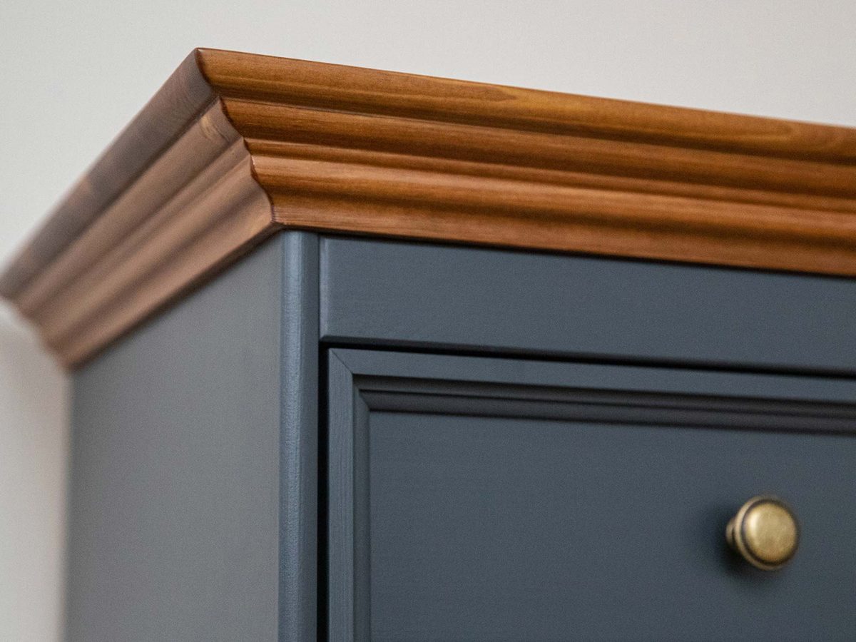 Biała klasyczna komoda drewniana grafit detale wykonania INGRID