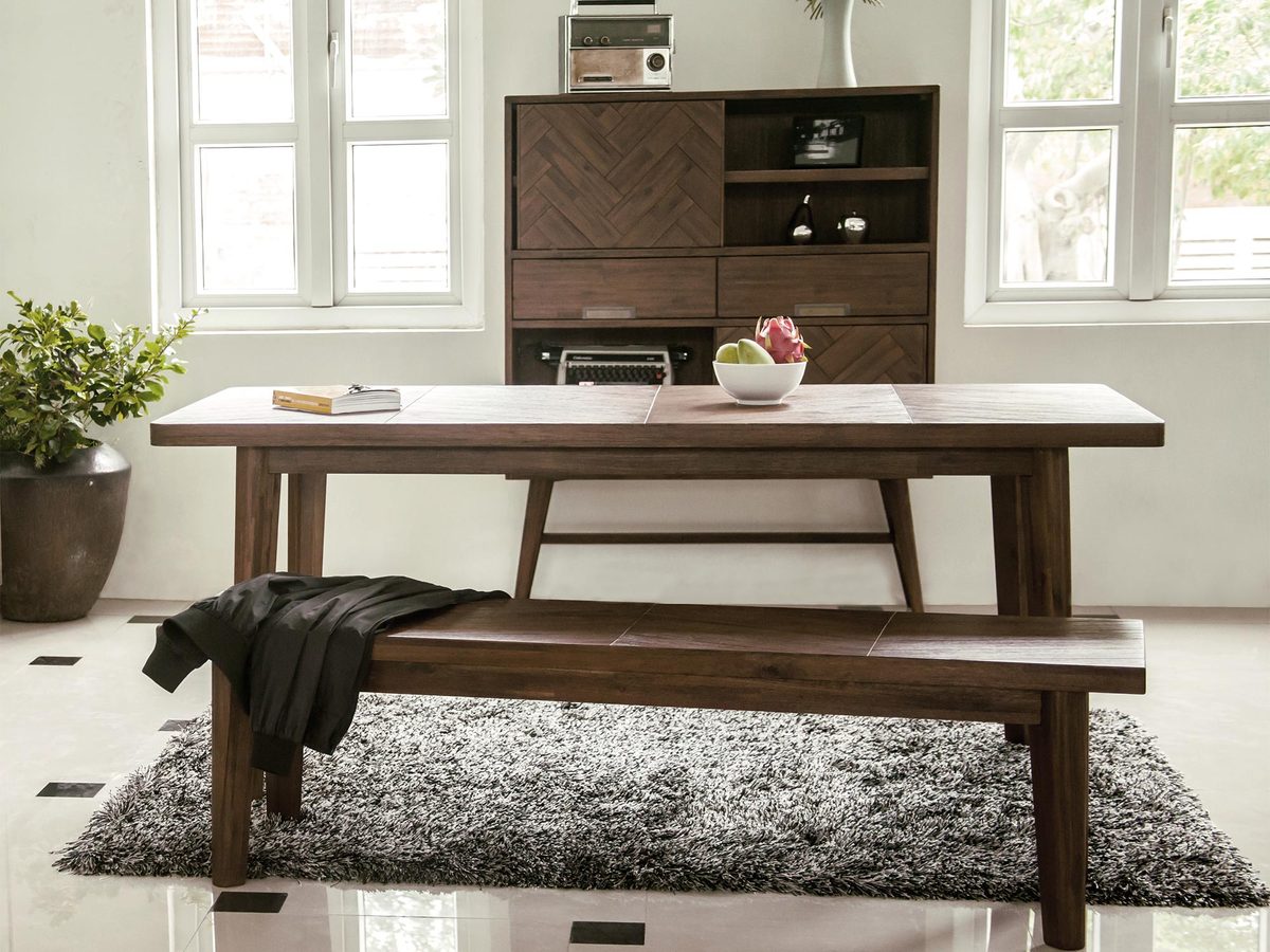 Komoda Willowbrook łączy klasyczny, retro styl z nowoczesnymi elementami, takimi jak intarsja w jodełkę, która zdobi fronty szuflad. Wykonana z litego drewna akacji, jest to mebel, który nie tylko dodaje uroku wnętrzom, ale także oferuje solidność i długowieczność. Metalowe uchwyty w kolorze mosiądzu są subtelnym akcentem, który podkreśla elegancję komody. Dodatkowo, ciemnobrązowy kolor drewna oraz stylowy design sprawiają, że jest to mebel, który wpisuje się w różnorodne aranżacje, od klasycznych po nowoczesne.