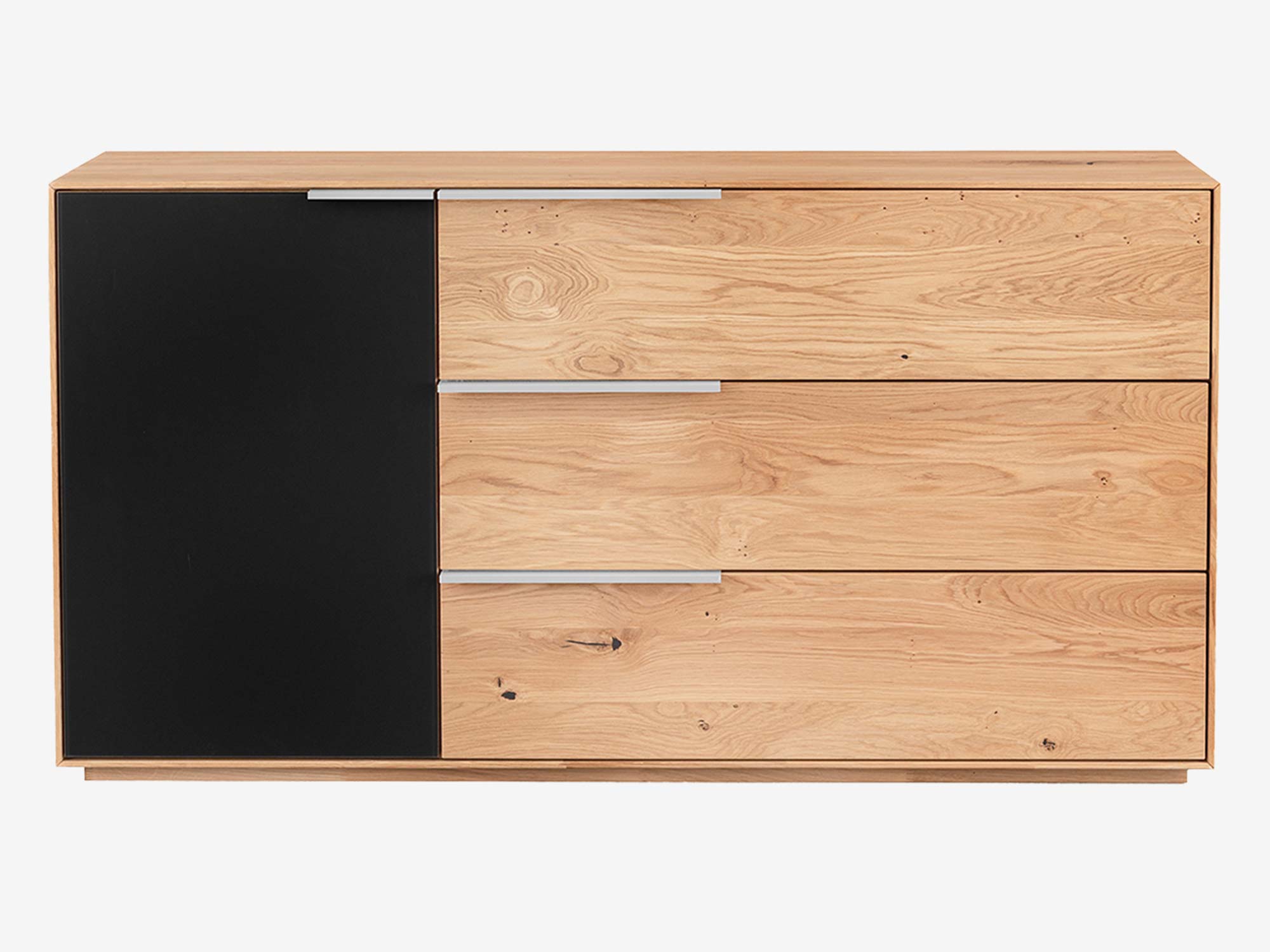 Eleana 1T3L to komoda, która łączy emocje (dotyk litego dębu, miękkość domyku, mat antracytu) z argumentami (Softclose BLUM, regulowana półka, trzy pojemne szuflady) i logiką (pojemność, trwałość, łatwość pielęgnacji). W sypialni, salonie czy biurze – wprowadza porządek i wycisza przestrzeń, nie narzucając się formą.