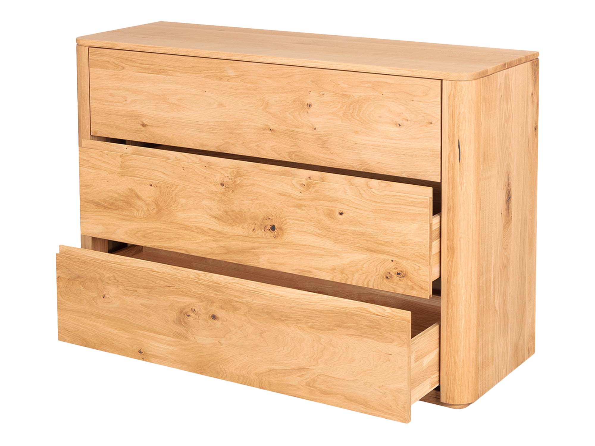 Drewniana komoda z litego drewna Lelina 3L to mebel, który w wyjątkowy sposób łączy estetykę, trwałość i praktyczność. Dzięki minimalistycznemu designowi, zaokrąglonym detalom oraz wysokiej jakości materiałom staje się nie tylko miejscem do przechowywania, ale także ozdobą wnętrza. To idealny wybór dla osób, które cenią naturalność i harmonię w aranżacji domu.