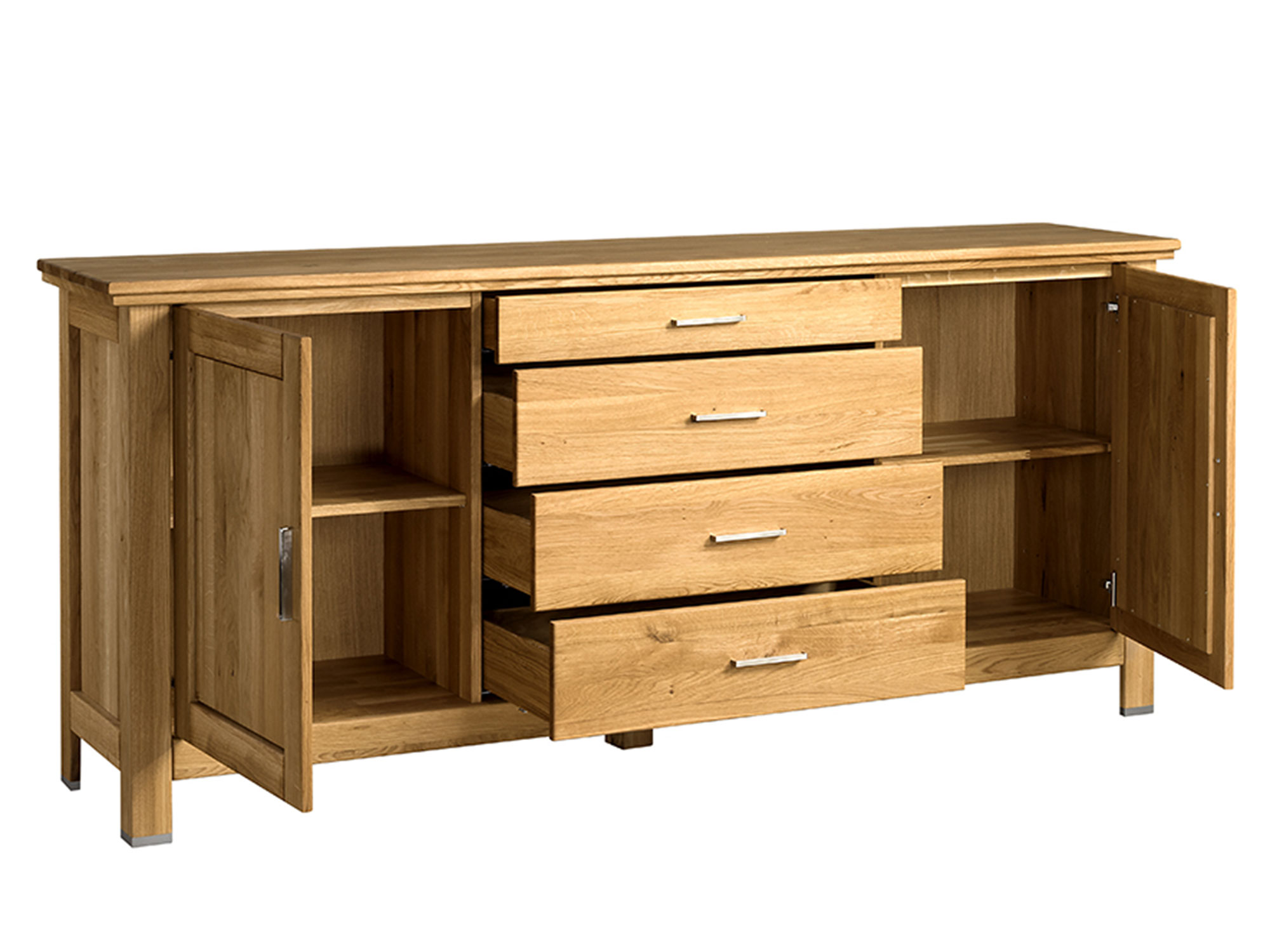 Stylowa i nowoczesna komoda z litego dębu wykonana z najwyższej jakości drewna dębowego bez sęków świetnie dostosuje się do każdej aranżacji niejednej jadalni czy salonu. Ponadto mocna struktura oraz nowomodne, stylowe szlifowanie sprawią, że duża komoda do salonu świetnie udekoruje niejeden pokój doskonale dopasowując się do każdej aranżacji. Meble ma funkcjonalne drzwiczki, i pojemne szuflady, dzięki czemu przechowywanie akcesoriów stołowych, zastawy czy serwisu nie będzie sprawiało żadnego kłopotu.