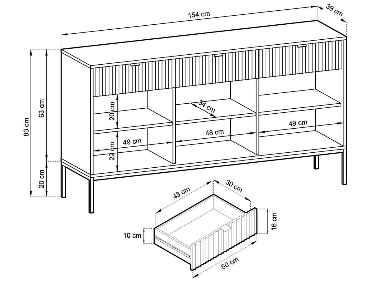 Głębokość: 39 cm / Szerokość: 154 cm / Wysokość: 83 cm