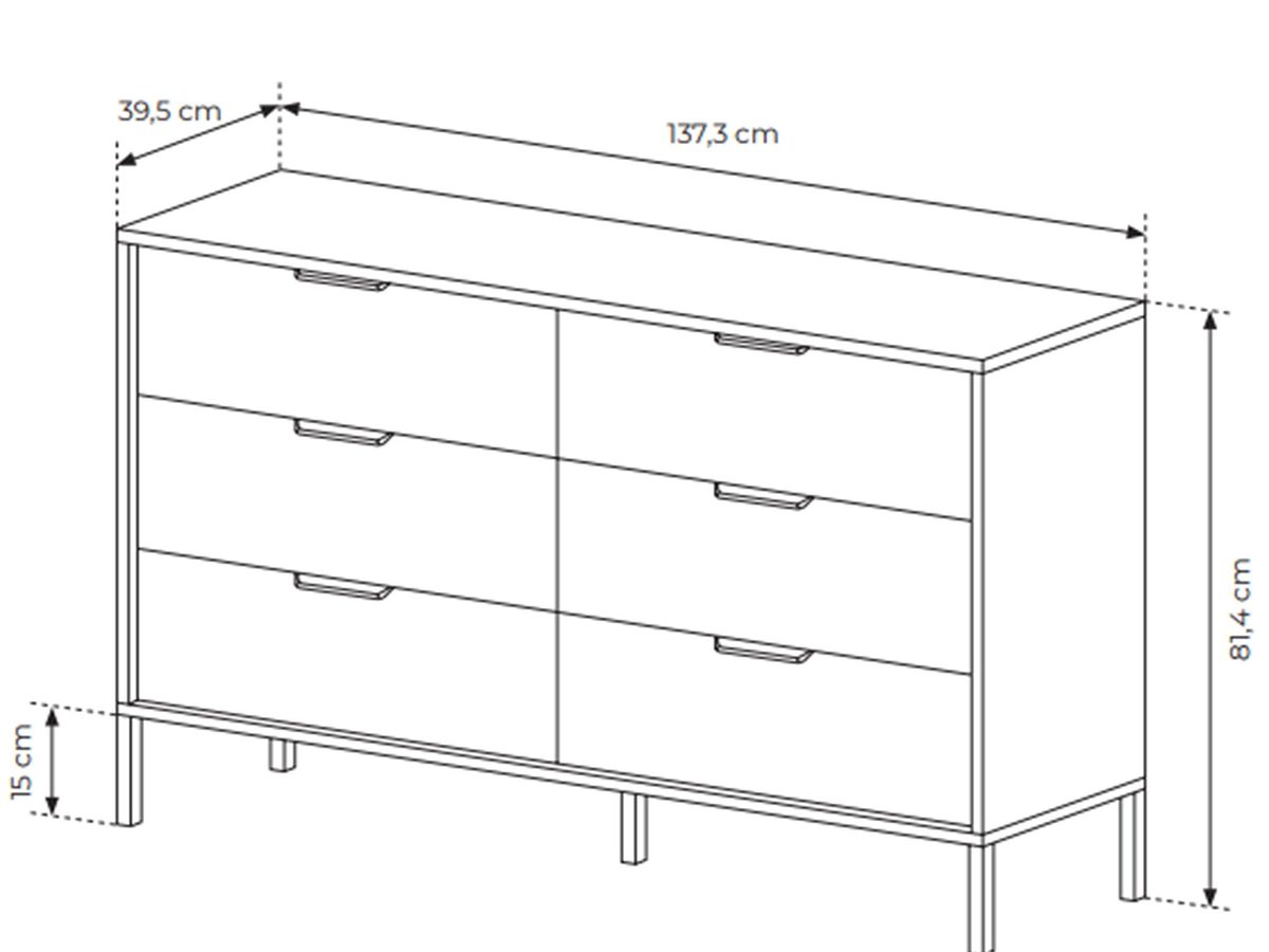 Industrialna Komoda CARLTON została zaprojektowana z myślą o długotrwałym użytkowaniu. Zastosowanie obrzeża ABS i zawiasów z systemem domykającym gwarantuje niezawodność na lata, a metalowe uchwyty dodają eleganckiego wykończenia.
