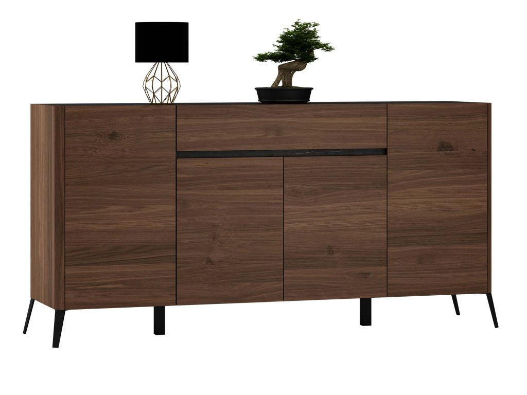 Komoda Lumeria oferuje cztery pojemne szafki oraz praktyczną szufladę. To idealne miejsce do przechowywania dokumentów, zastawy stołowej, tekstyliów lub innych przedmiotów, które chcesz mieć pod ręką, zachowując jednocześnie porządek w pomieszczeniu. Dzięki systemowi maksymalnego wysuwu zawartość szuflady jest dostępna w całości, co znacząco podnosi komfort użytkowania.