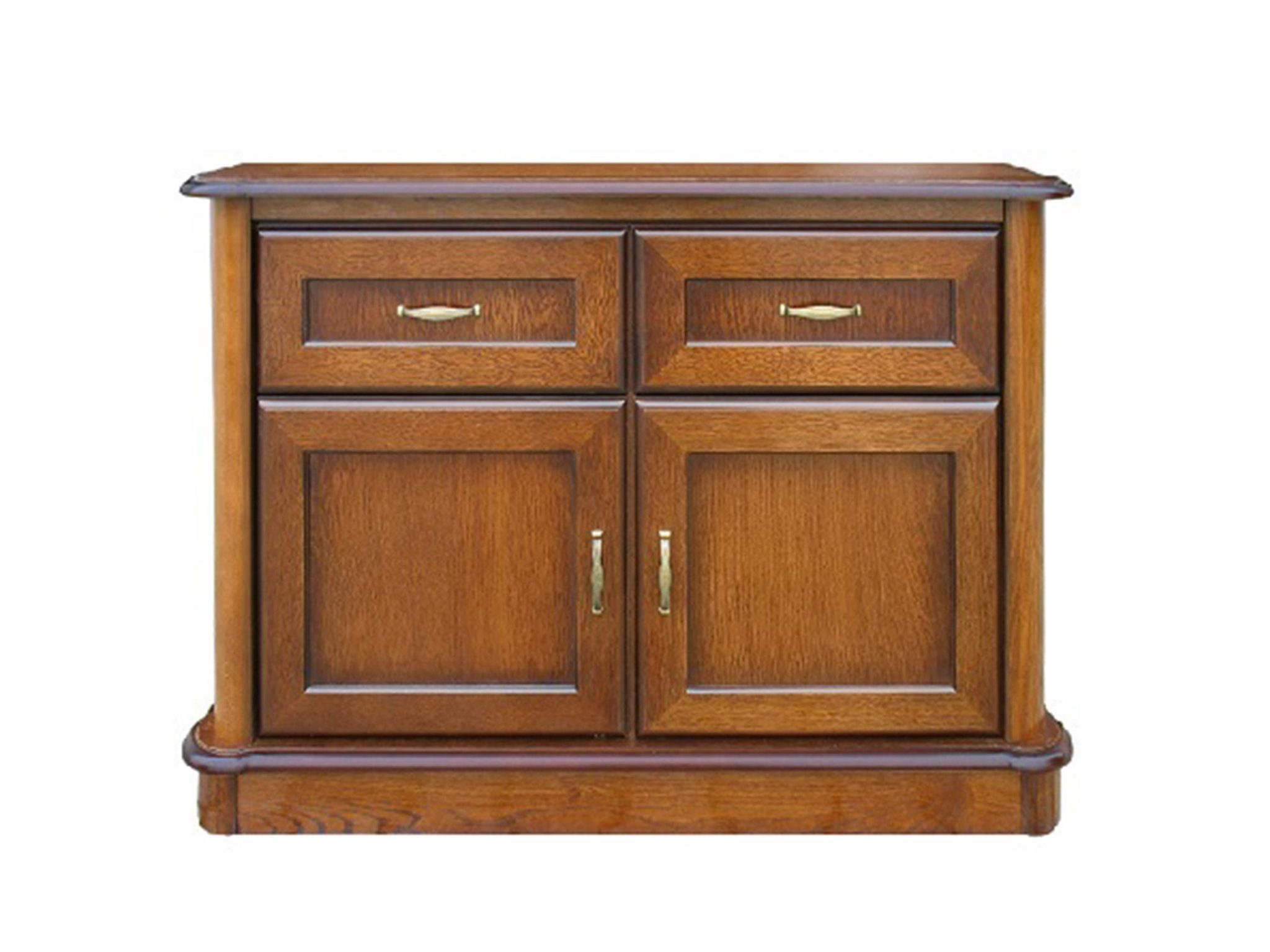 Drewniana komoda z dwiema szafkami i szufladami, styl klasyczny