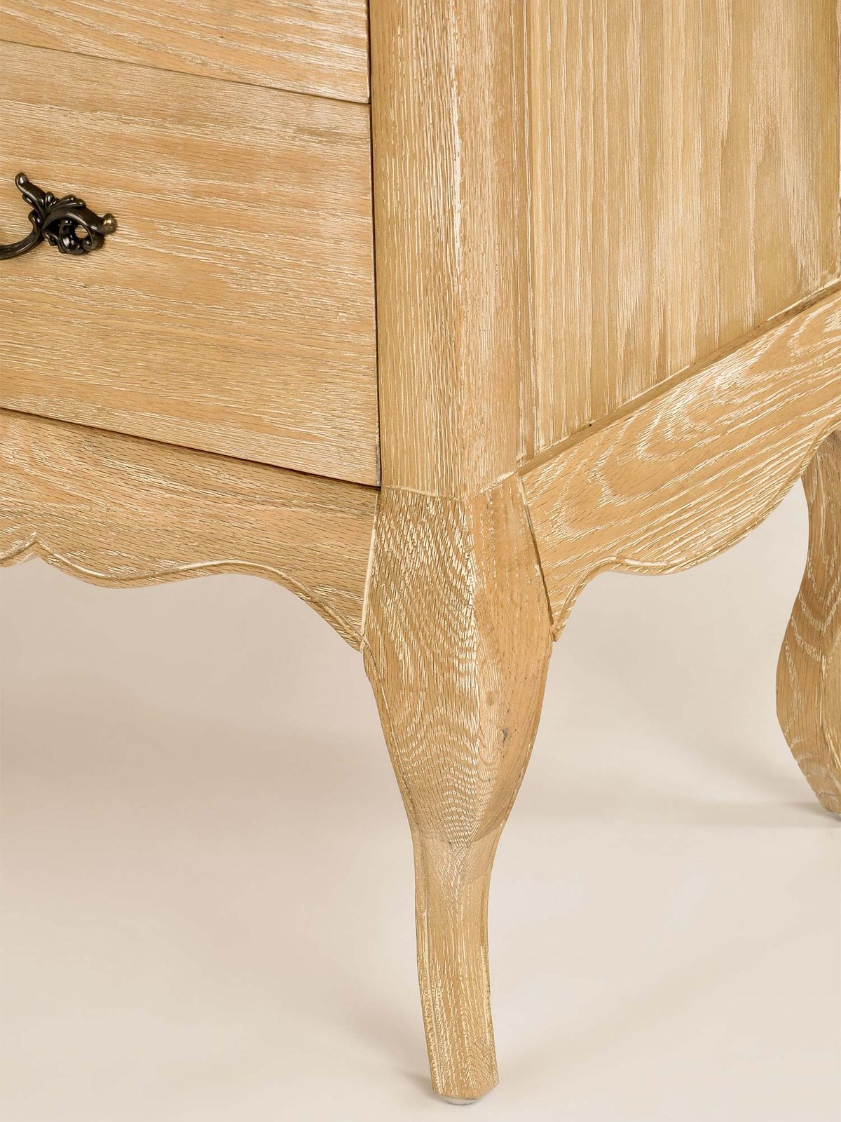 Komoda Venezia Oak została zaprojektowana z myślą o miłośnikach klasycznego stylu francuskiego. Jej gięte nogi, precyzyjne frezowania oraz ozdobne uchwyty to elementy, które podkreślają jej elegancki charakter. Szczotkowana powierzchnia i delikatne przetarcia dodają subtelnego wdzięku vintage, czyniąc tę komodę nie tylko funkcjonalnym meblem, ale także piękną ozdobą wnętrza.