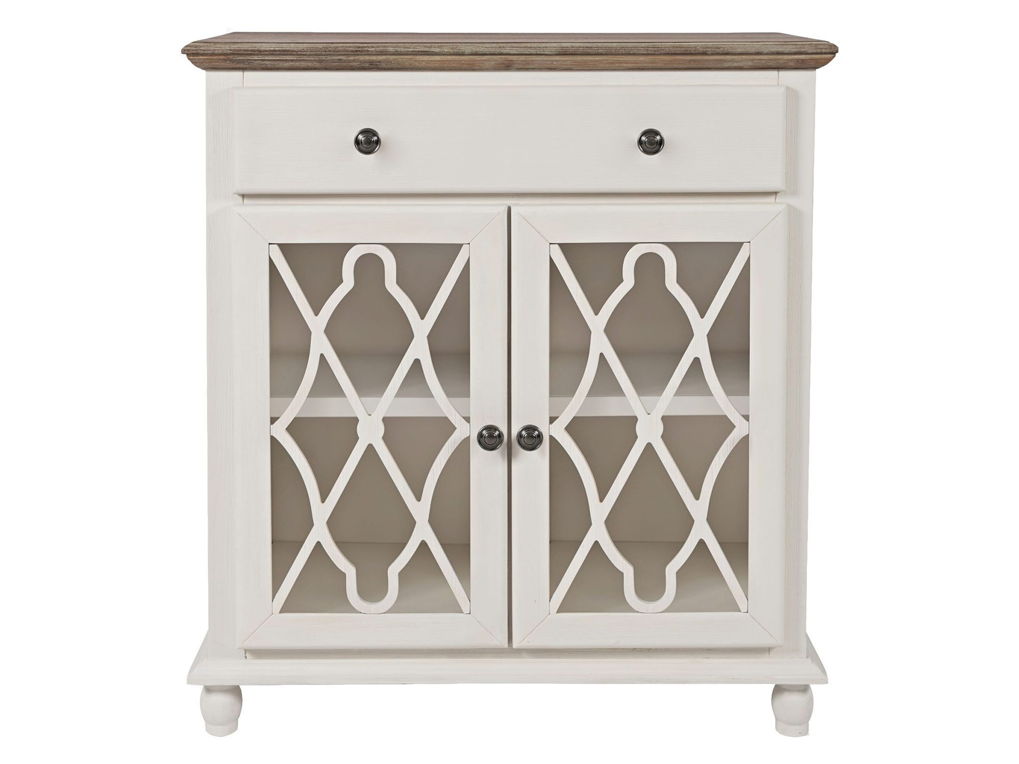 Komoda jasnokremowa z przeszklonymi drzwiami i szprosami – Avola