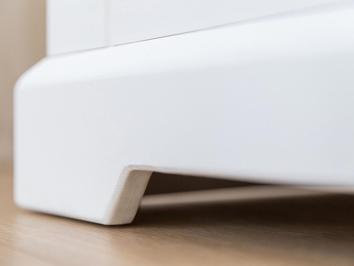 - Praktyczność i Komfort Użytkowania: Dwie szuflady i szafka, wyposażone w prowadnice z cichym domykiem, zapewniają wygodę i funkcjonalność.