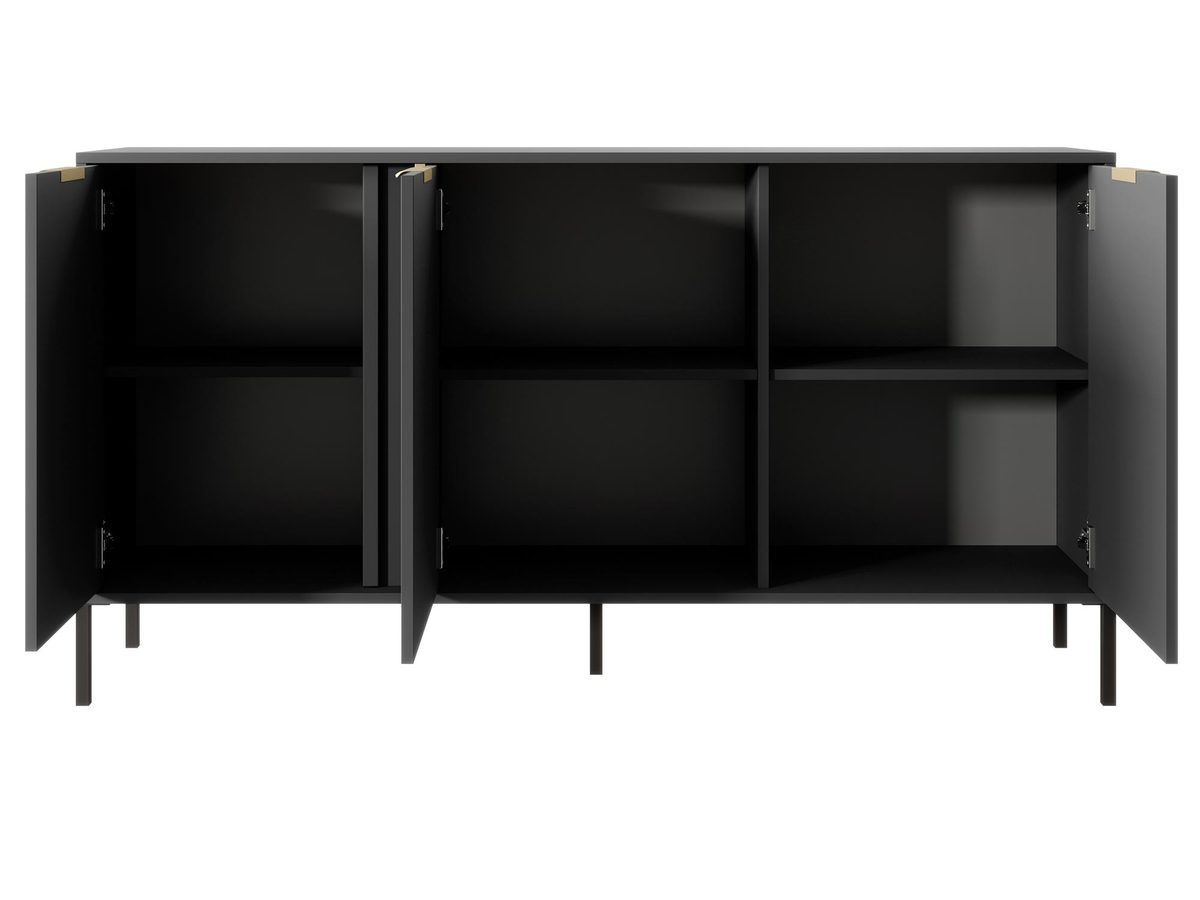 - Nowoczesny design: Komoda Mars 153 cm wyróżnia się klasycznym antracytem, który został wzbogacony o złote obrzeża ABS, nadając meblowi nie tylko elegancji, ale i wyrafinowanego wyglądu.