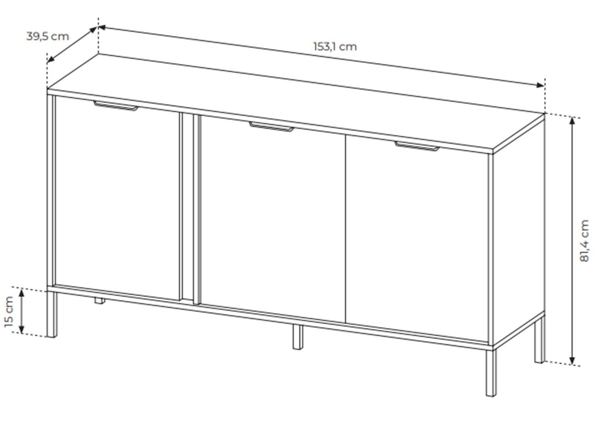 - Wysoka funkcjonalność: Z myślą o Twojej wygodzie, komoda została zaprojektowana tak, aby oferować przestronną i praktyczną przestrzeń do przechowywania. Jej wymiary (szerokość 153,1 cm / wysokość 81,4 cm / głębokość 39,5 cm) pozwalają na efektywne wykorzystanie miejsca w każdym salonie.