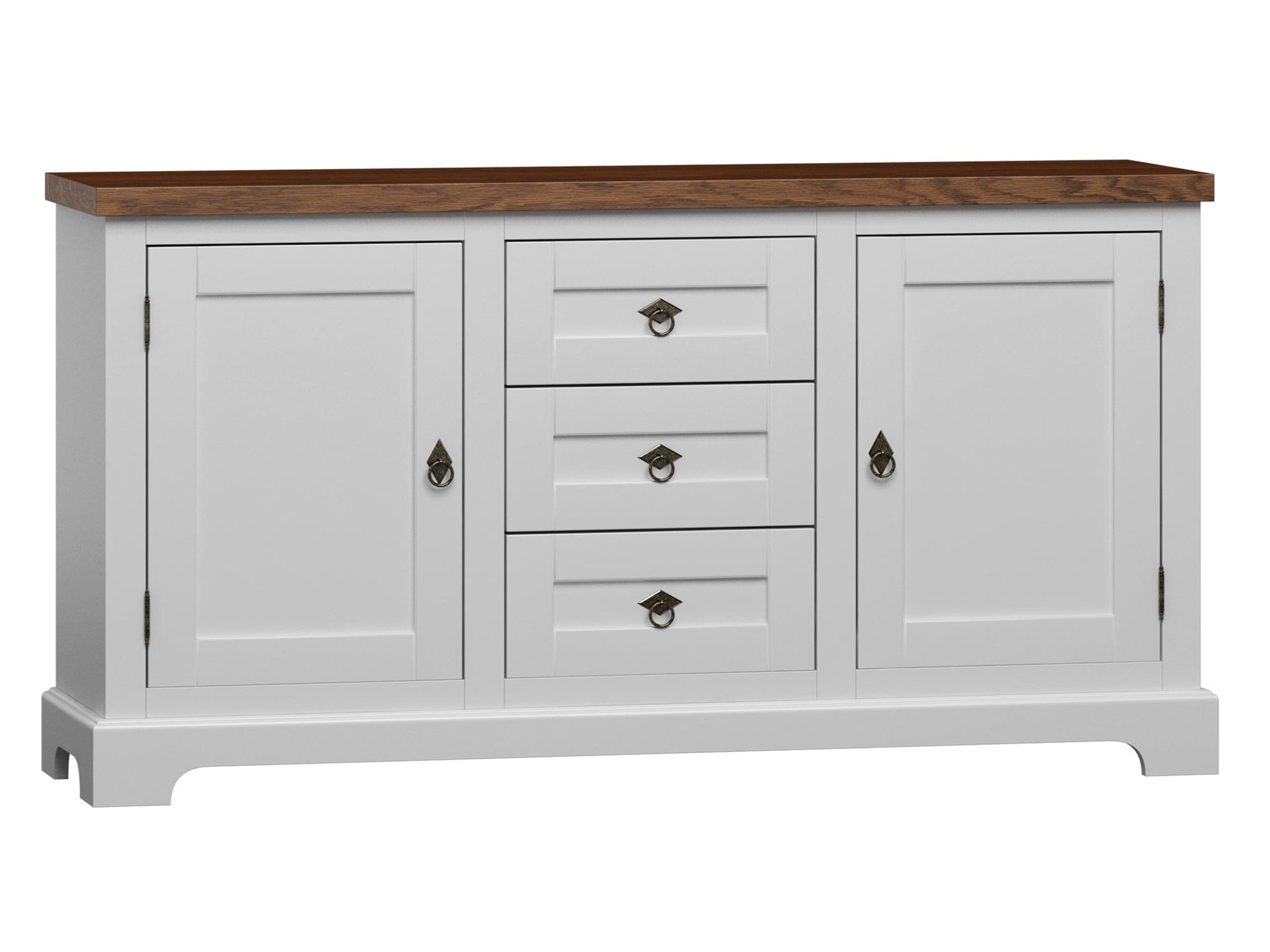 - Materiał: Korpus i fronty wykonane z płyty meblowej, fornir dębowy