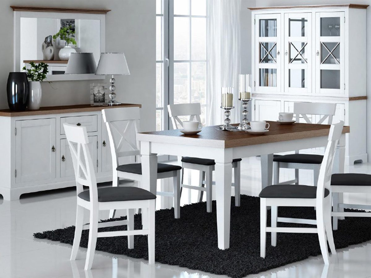 - Kolorystyka: Biały korpus i fronty z akcentami forniru w odcieniu orzecha włoskiego