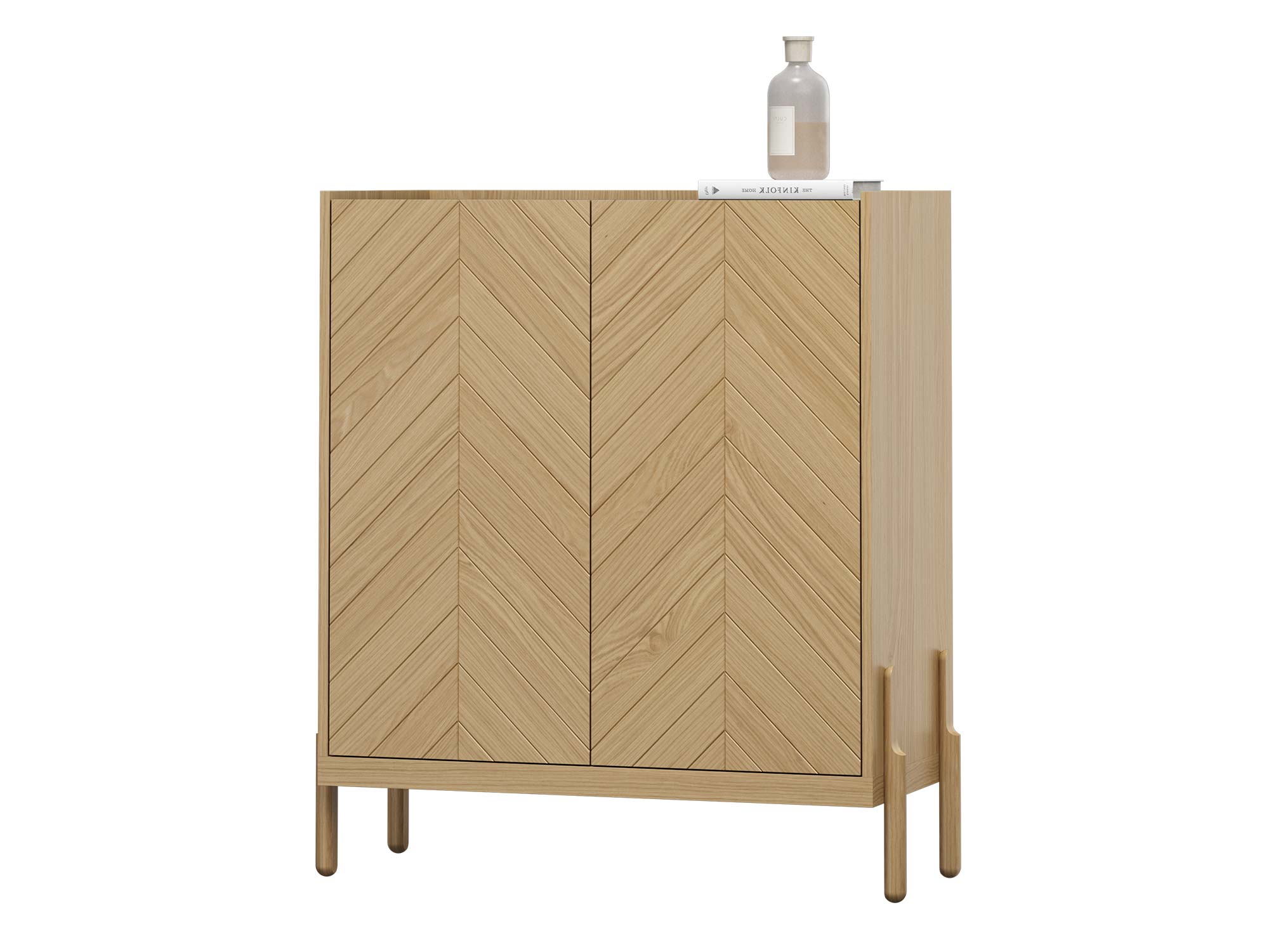 Komoda wysoka Enza Saviero to mebel, który doskonale łączy w sobie elegancję, funkcjonalność i nowoczesny design. Dzięki starannemu wykonaniu z forniru dębowego oraz unikalnym detalom, takim jak wzory jodełki czy blat o marmurkowej fakturze, komoda stanie się ozdobą każdego wnętrza. Jej praktyczne rozwiązania, w tym system push-to-open i pełny wysuw szuflad, sprawiają, że jest równie piękna, co wygodna w codziennym użytkowaniu.