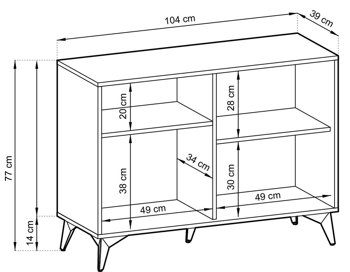 - Praktyczne wymiary: Z wymiarami 103,5/76,7/39 CM, komoda ta oferuje optymalną przestrzeń do przechowywania, pozwalając na zachowanie porządku w Twoim domu przy jednoczesnym zachowaniu estetycznej formy.