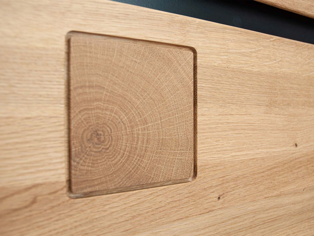 - Fronty – lity dąb: Szczegółowy design frontów z litego dębu dodaje Komodzie I Opus wyjątkowego charakteru i elegancji.