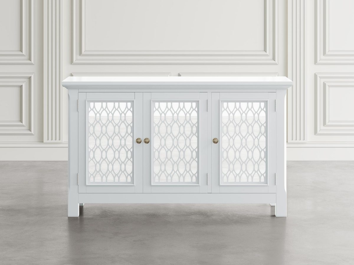 Lustrzana Biała Komoda z Dekoracyjnymi Szprosami – Avola