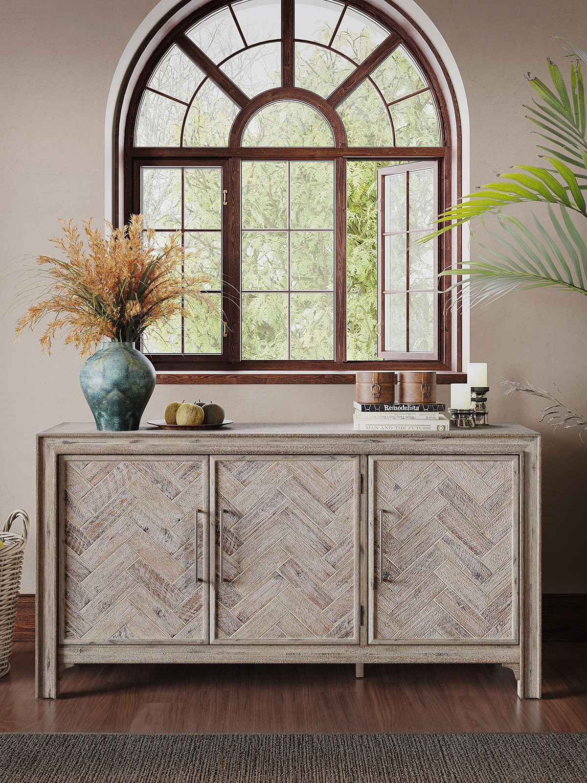 Naturalna Komoda z Intarsjowanymi Drzwiami i Frezowanymi Detalami – Avola