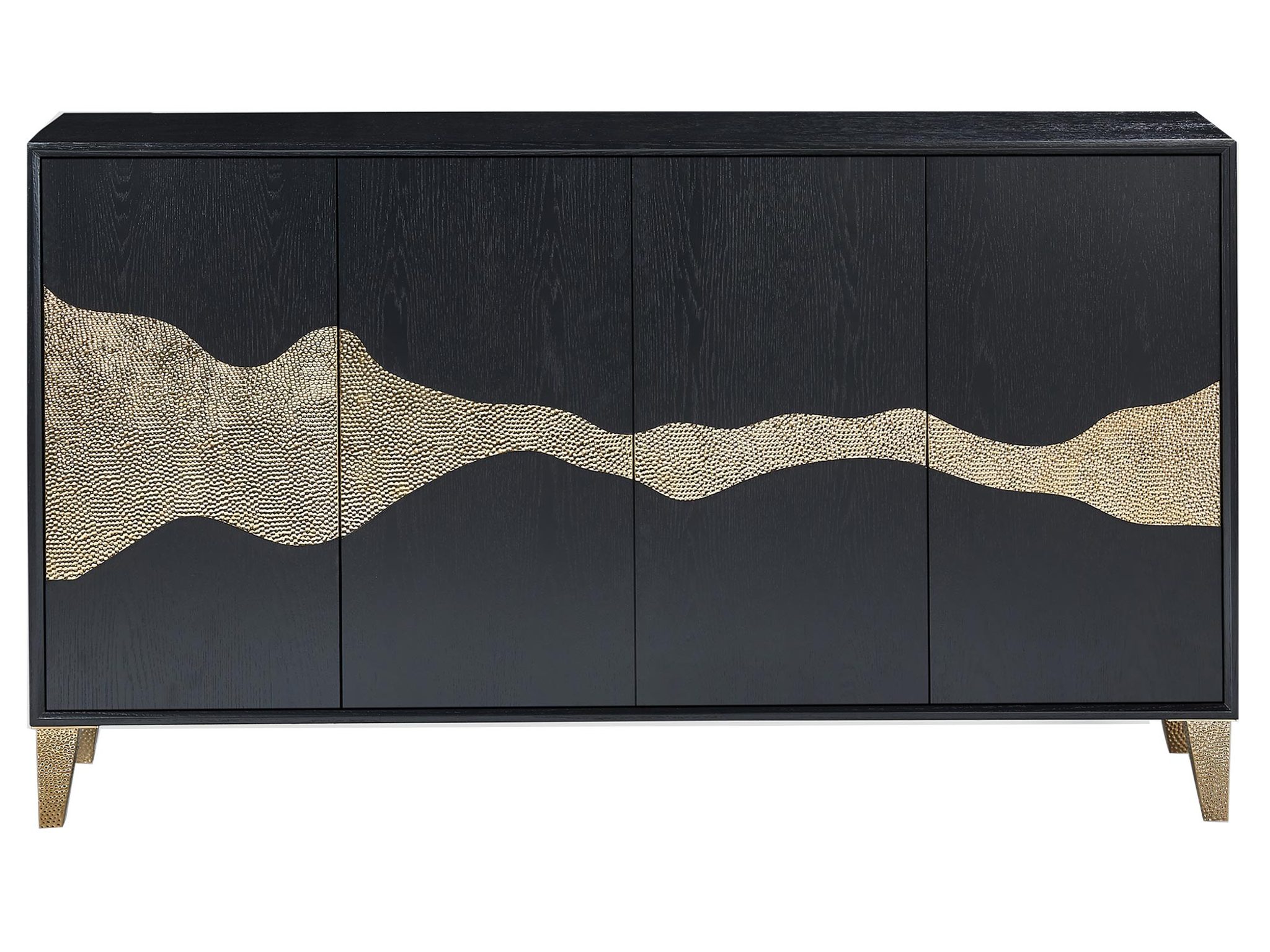 Oryginalna Komoda Czarna ze Złotymi Akcentami i Parametrycznym Wzorem – Eleganza